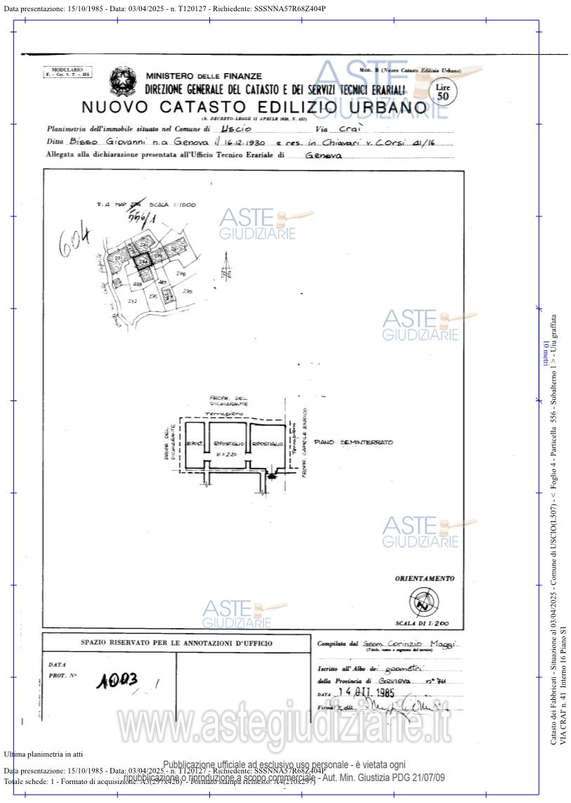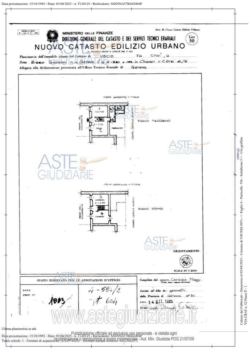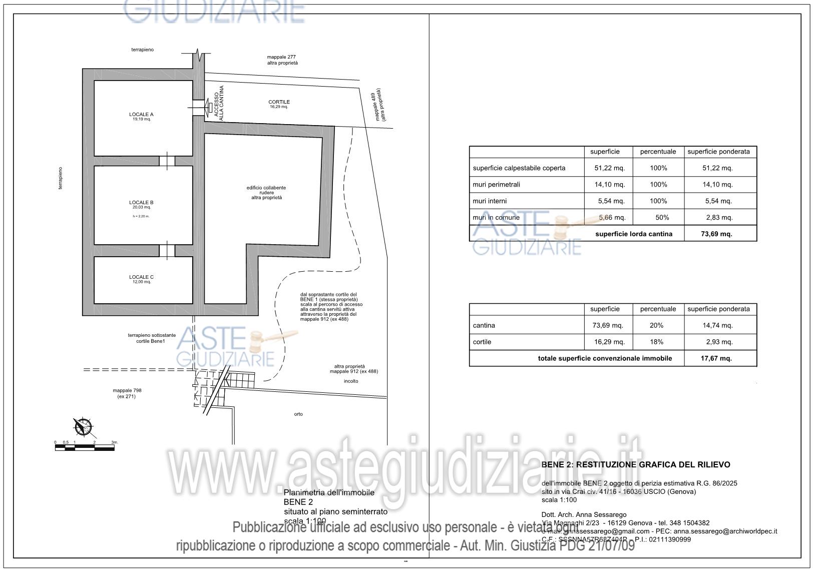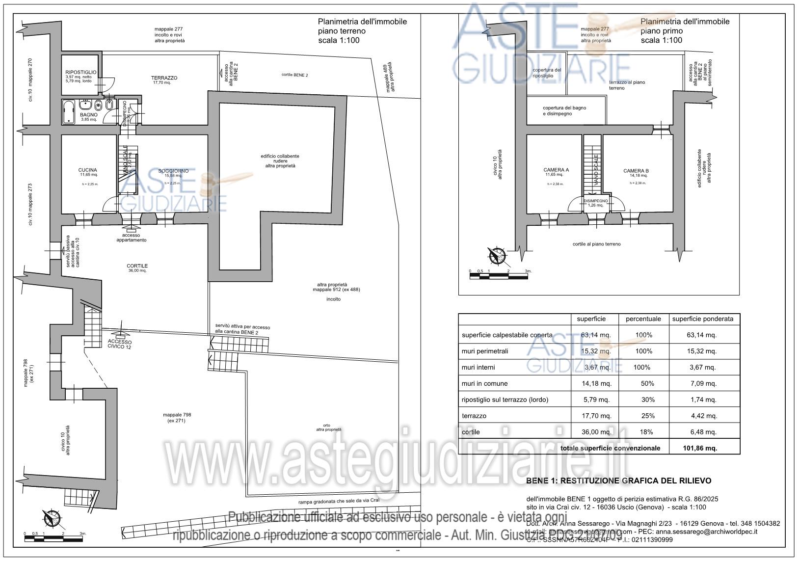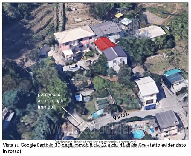 Vendita all'asta Senza incanto, con gara telematica sincrona mista - LOTTO UNICO: BENE 1: Piena proprietà dell’immobile sito in Uscio, Via Craì 12/1 di due piani: il terreno è composto da soggiorno, cucina, vano scala, sottoscale, disimpegno, bagno, terrazzo, ripostiglio sul terrazzo e cortile; il primo è composto da due camere e disimpegno caposcala. BENE 2: Piena proprietà della cantina in Uscio, Via Craì 41/16 situata al piano seminterrato, sottostante al civico 12 di Via Craì, composta da tre locali e da un cortile antistante l’ingresso. Prezzo base € 48.000,00 (offerta minima € 36.000,00). Data vendita 14/05/2026 ore 14:30. Professionista delegato alla vendita Avv. Andrea Corrado - Email "andrea.corrado@avvocatigenova.it"; Tel. 010532453. Custode Giudiziario Dott. Sovemo - Email "immobiliare@sovemo.it"; Tel. 0105299253. Rif. Tribunale di Genova - Esecuzione immobiliare post legge 80 n. 86/2025