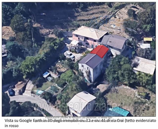 Vendita all'asta Senza incanto, con gara telematica sincrona mista - LOTTO UNICO: BENE 1: Piena proprietà dell’immobile sito in Uscio, Via Craì 12/1 di due piani: il terreno è composto da soggiorno, cucina, vano scala, sottoscale, disimpegno, bagno, terrazzo, ripostiglio sul terrazzo e cortile; il primo è composto da due camere e disimpegno caposcala. BENE 2: Piena proprietà della cantina in Uscio, Via Craì 41/16 situata al piano seminterrato, sottostante al civico 12 di Via Craì, composta da tre locali e da un cortile antistante l’ingresso. Prezzo base € 64.000,00 (offerta minima € 48.000,00). Data vendita 03/02/2026 ore 14:00. Professionista delegato alla vendita Avv. Andrea Corrado - Email "andrea.corrado@avvocatigenova.it"; Tel. 010532453. Custode Giudiziario Dott. Sovemo - Email "immobiliare@sovemo.it"; Tel. 0105299253. Rif. Tribunale di Genova - Esecuzione immobiliare post legge 80 n. 86/2025