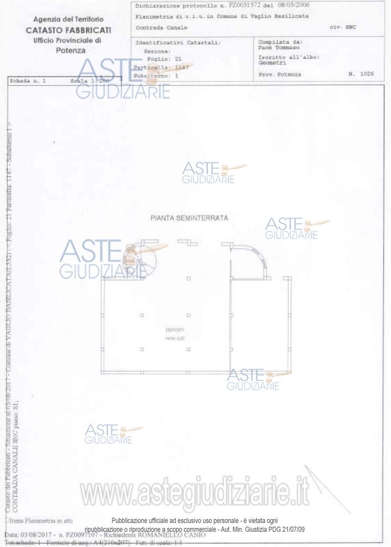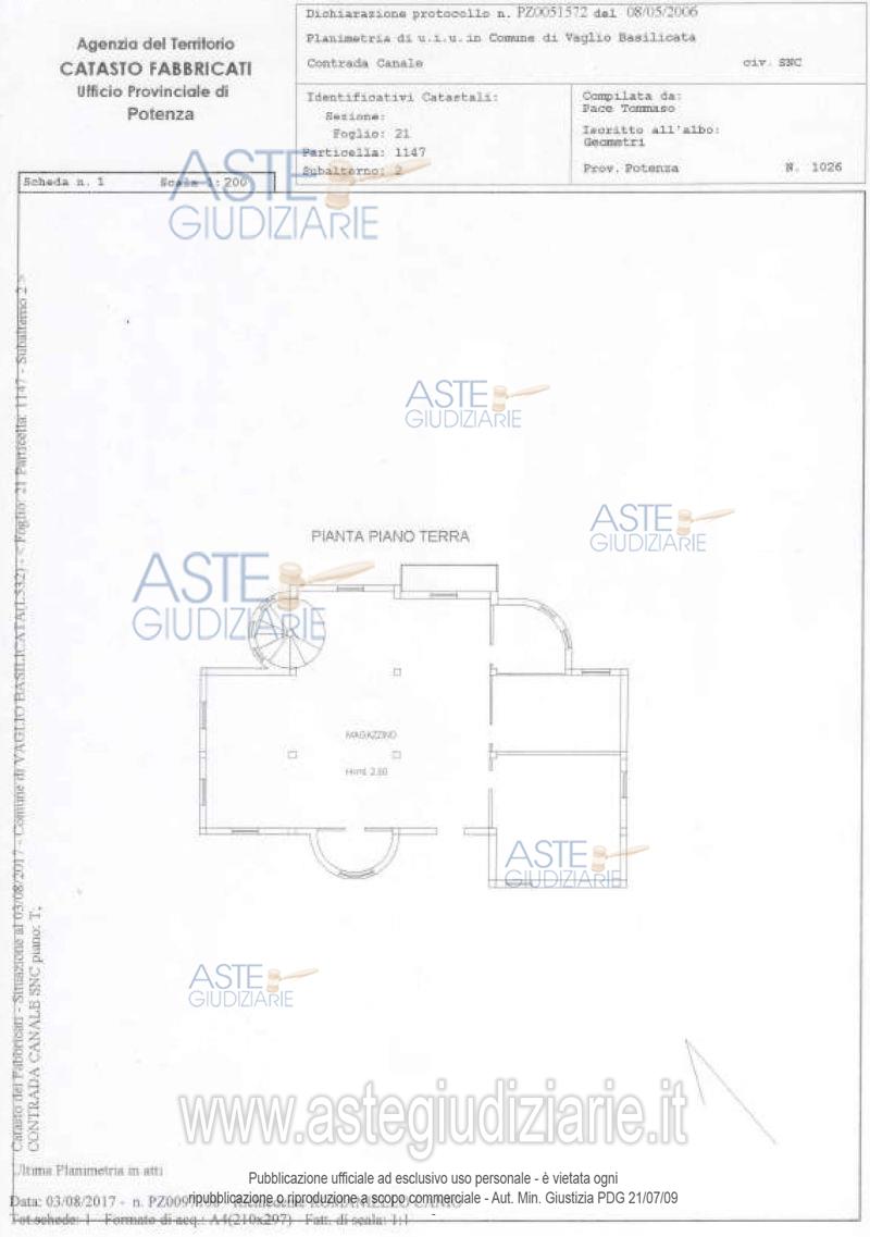 Vendita all'asta Senza incanto - LOTTO UNICO: Piena proprietà per 1/1, costituente Lotto Unico: casa di abitazione con depositi sita in Località in Vaglio Basilicata (PZ), alla Strada Pizzilli, n. 13 (c.da Canale s.n.c.). Prezzo base € 163.266,00 (offerta minima € 122.450,00). Data vendita 11/12/2025 ore 12:00. Professionista delegato alla vendita Avv. Valerio Di Palma - Email "posta@studiolegaledipalma.net"; Cell. 3288881136; Tel. 08119968079. Custode Giudiziario Avv. Valerio Di Palma - Email "posta@studiolegaledipalma.net"; Cell. 3288881136; Tel. 08119968079. Rif. Tribunale di Potenza - Esecuzione immobiliare post legge 80 n. 157/2014