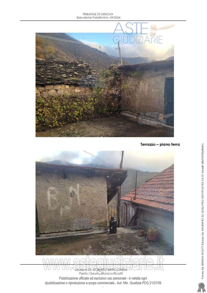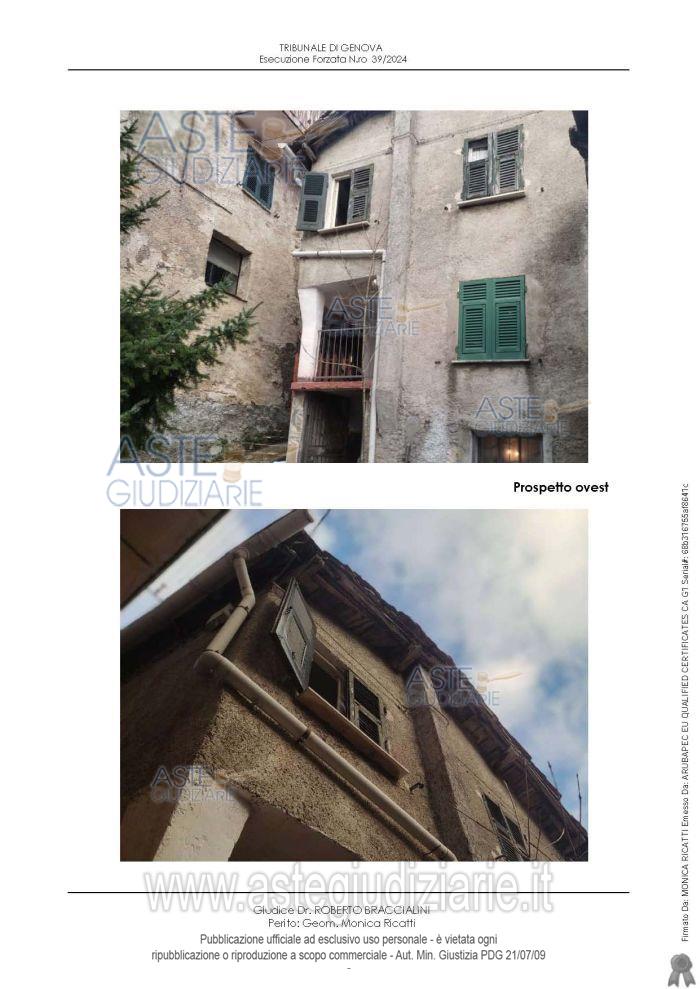 Vendita all'asta Senza incanto, con gara telematica sincrona mista - LOTTO UNICO: Piena ed intera proprietà della seguente unità immobiliare: Casa Unifamiliare con annessi cantina doppia e fienile con giardino ubicati al primo piano sottostrada; cantina posta al piano secondo sottostrada, ubicata nel comune di Valbrevenna (GE) – località Chiappa, civ. 4 – piani terra, primo, primo e secondo sottostrada. Prezzo base € 25.312,50 (offerta minima € 18.984,37). Data vendita 27/05/2026 ore 14:00. Professionista delegato alla vendita Dott. Marco Dentici - Tel. 0105705760. Custode Giudiziario Dott. Sovemo S.R.L. - Email "visitegenova@sovemo.com"; Tel. 0105299253. Rif. Tribunale di Genova - Espropriazione immobiliare (cartabia) n. 39/2024