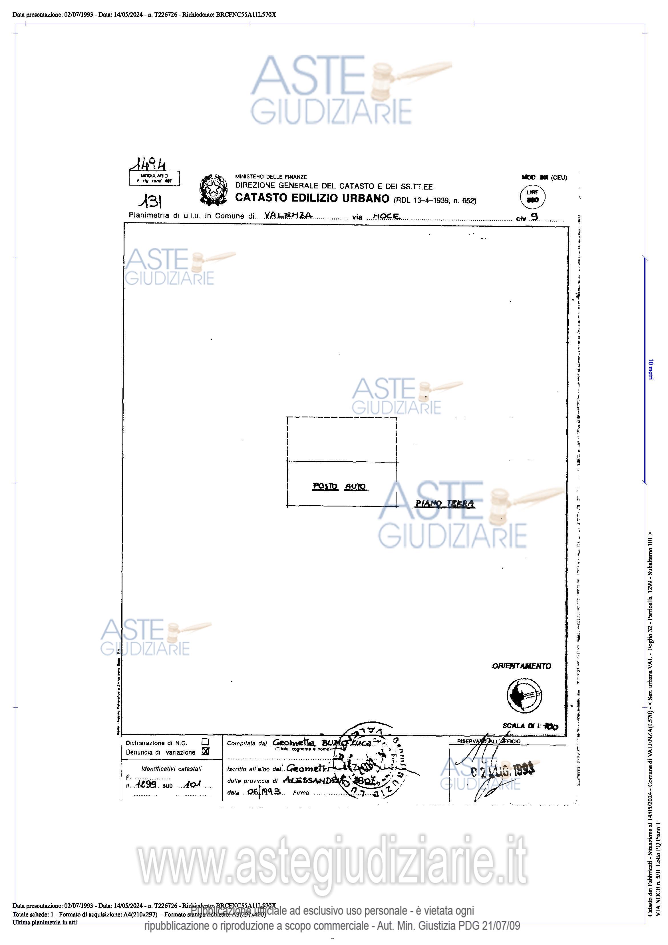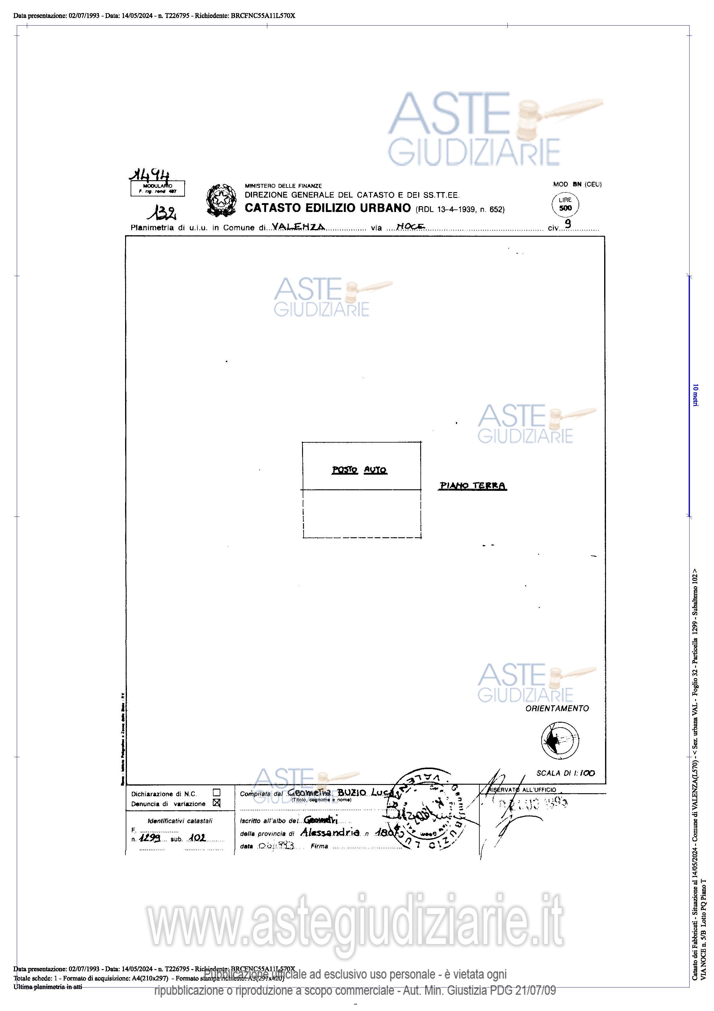 Vendita all'asta Senza incanto, con gara telematica asincrona - LOTTO 1: Piena proprietà 1/1. Trattasi di immobili siti in fabbricato a regime condominiale, con accesso da Via Circonvallazione Ovest 55 e Via Noce n. 9. Nel dettaglio: alloggio al piano terra, composto da ingresso, soggiorno, ripostiglio, disimpegno, cucina, due camere, due bagni e giardino a due lati ad uso esclusivo di mq 250 con cantina al piano primo interrato; garage al piano primo interrato, n. due posti auto al piano terra. Prezzo base € 99.150,00 (offerta minima € 74.362,50). Data inizio operazioni di vendita: 05/05/2026 ore 16:00. Giudice Elisabetta Bianco. Professionista delegato alla vendita Avv. Nicolò Cavaliero - Email "nicolo.cavaliero@studiolegalepaneri.it"; Tel. 01311676919. Custode Giudiziario Avv. Nicolò Cavaliero - Email "nicolo.cavaliero@studiolegalepaneri.it"; Tel. 01311676919. Rif. Tribunale di Alessandria - Espropriazione immobiliare (cartabia) n. 91/2024