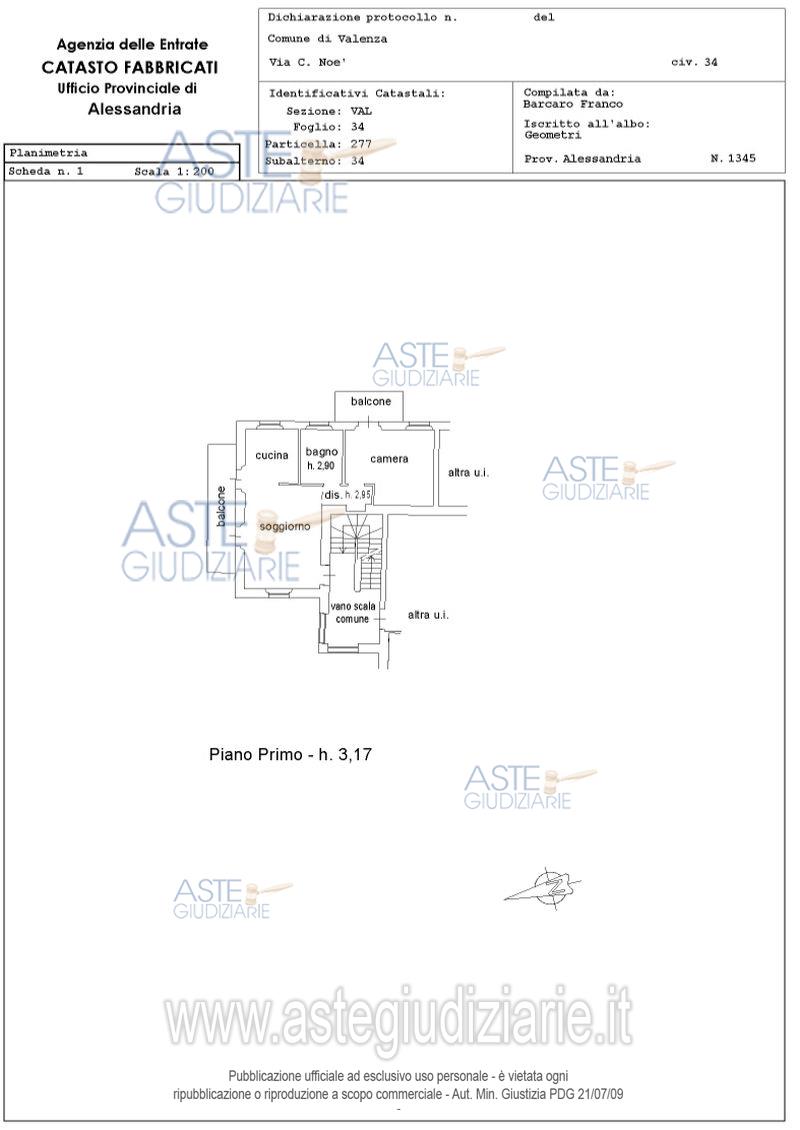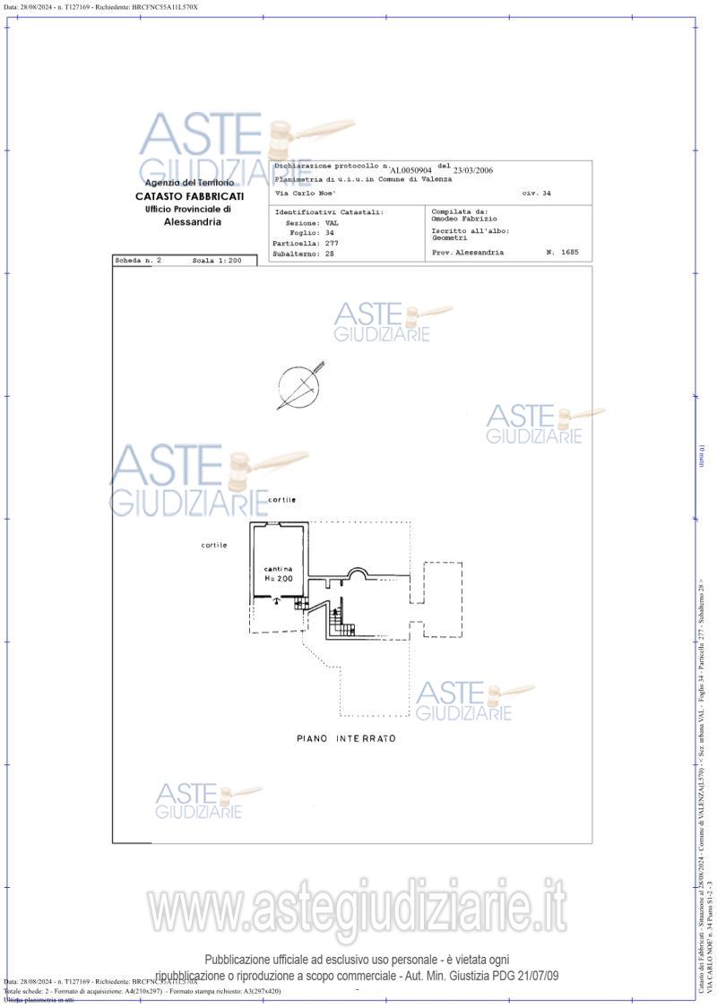 Vendita all'asta Senza incanto - LOTTO 2: Piena proprietà di unità immobiliare sita all’interno di edificio residenziale composto da cantine, centrale termica, corte giardino comune, vano scala comune e box auto. L’unità immobiliare ad uso abitazione è sita al primo piano ed è composta da ingresso su soggiorno, cucina, camera, disimpegno, bagno e un balcone e confina con corte comune giardino, vano scala comune e altra unità immobiliare. All’unità immobiliare è collegato locale cantina sito al piano sottostrada. Prezzo base € 53.800,00 (offerta minima € 40.350,00). Data vendita 16/09/2026 ore 15:30. Professionista delegato alla vendita Avv. Umberto Casorati - Email "avvocatocasorati@gmail.com"; Tel. 0131260889. Custode Giudiziario Avv. Umberto Casorati - Email "avvocatocasorati@gmail.com"; Tel. 0131260889. Rif. Tribunale di Alessandria - Espropriazione immobiliare (cartabia) n. 192/2024