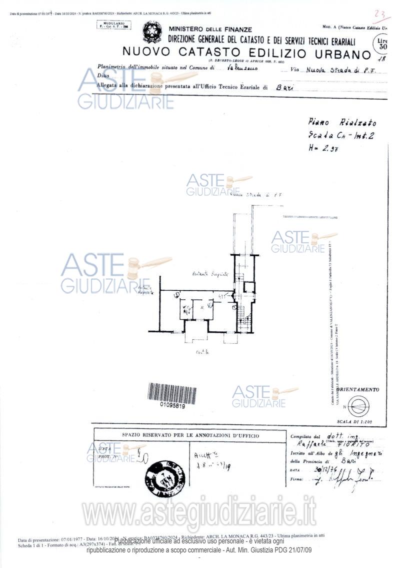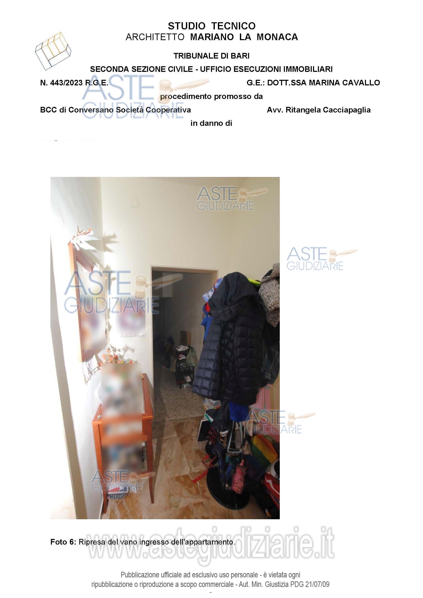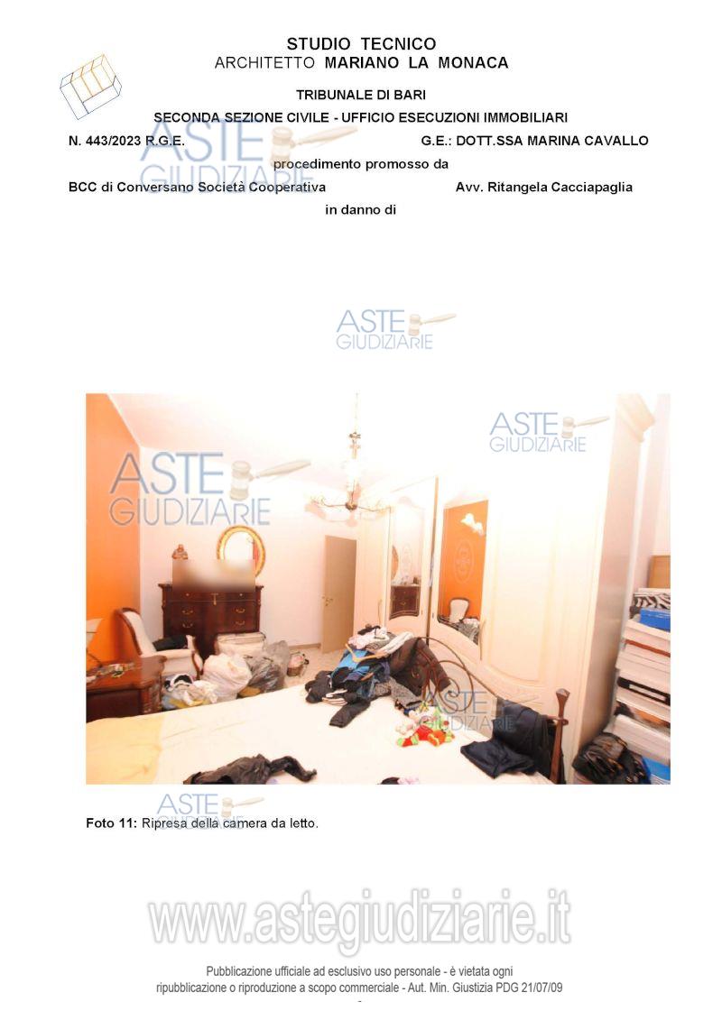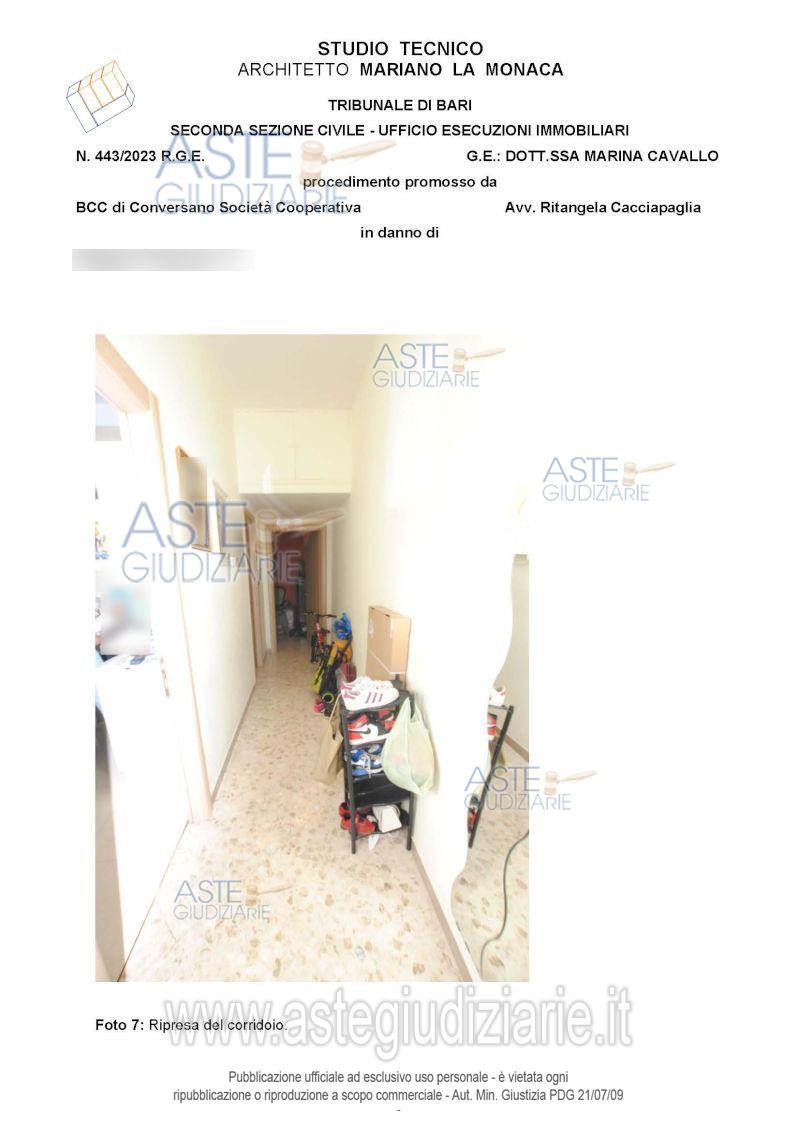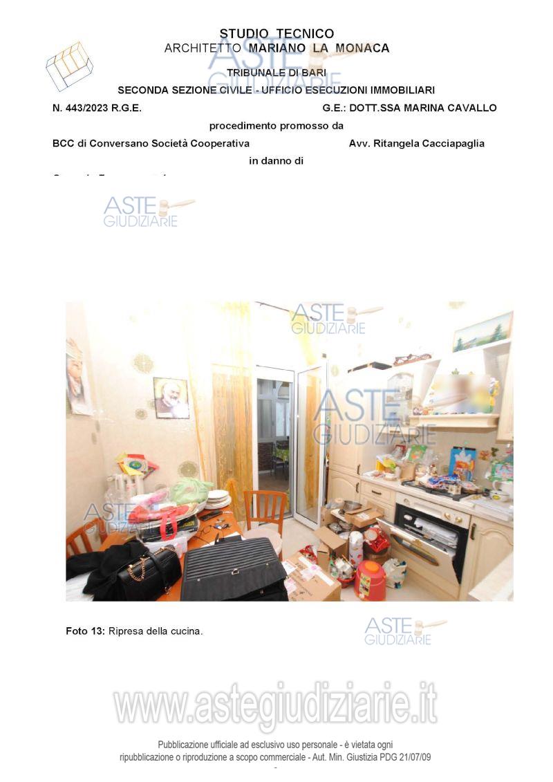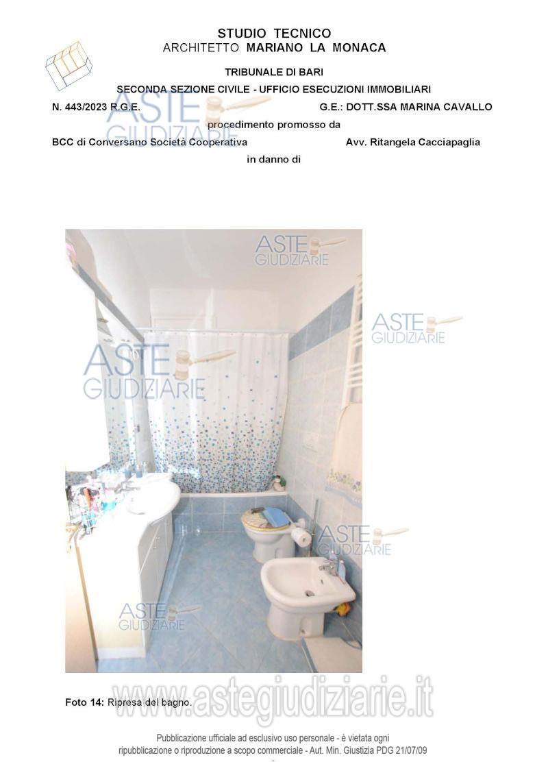 Vendita all'asta Senza incanto, con gara telematica asincrona - LOTTO UNICO: Appartamento per civile abitazione al piano rialzato composto di due vani e accessori, in particolare ingresso, corridoio, soggiorno-pranzo, camera da letto, cucina, bagno, balcone-veranda e balcone. Prezzo base € 70.000,00 (offerta minima € 52.500,00). Data inizio operazioni di vendita: 11/12/2025 ore 16:00. Giudice Dott. Marina Cavallo. Professionista delegato alla vendita Avv. Olimpia Pedota - Email "olimpia.pedota@libero.it". Custode Giudiziario Avv. Olimpia Pedota - Email "olimpia.pedota@libero.it". Rif. Tribunale di Bari - Espropriazione immobiliare (cartabia) n. 443/2023