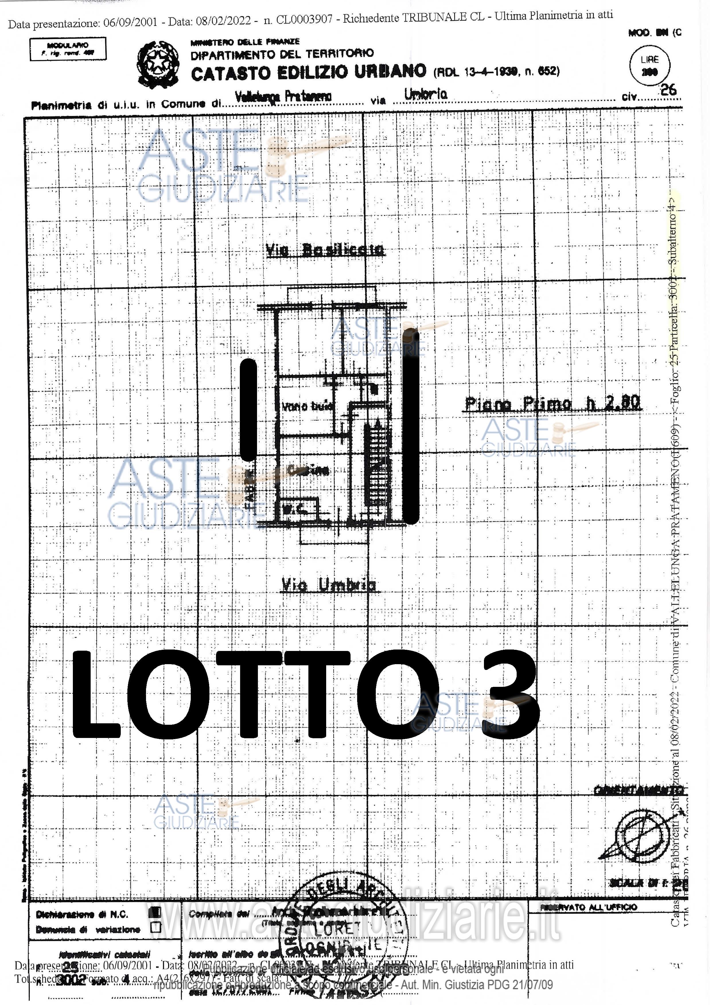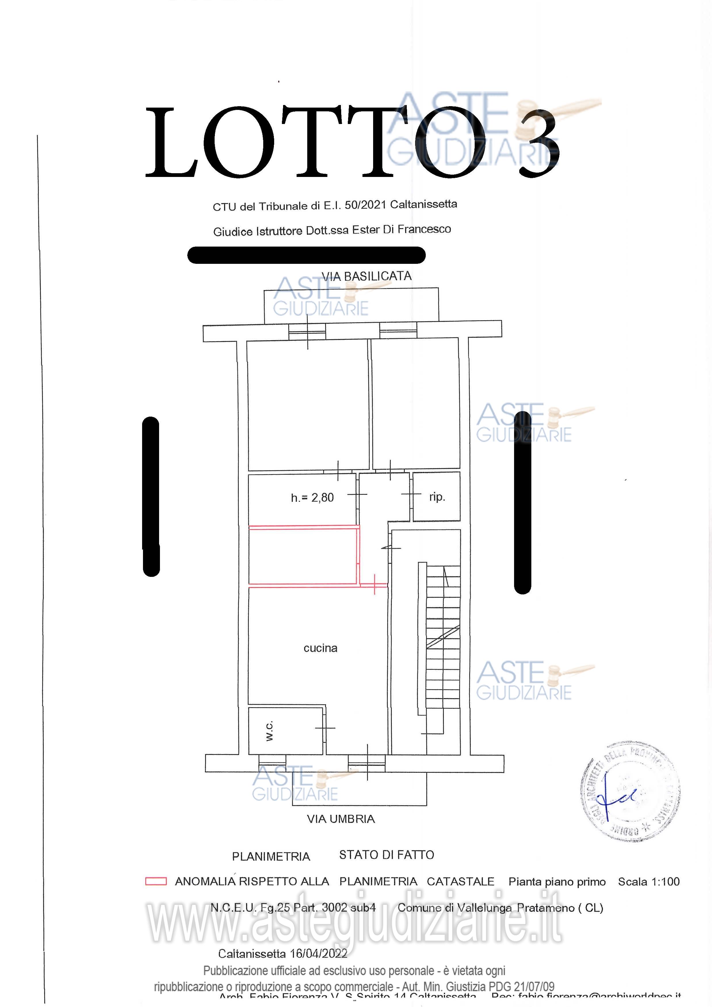 Vendita in attesa dell'emissione del nuovo bando d'asta. LOTTO 3: LOTTO TRE - Piena proprietà di un’abitazione di tipo economico di mq. 61,70 al piano primo e fa parte di un fabbricato di 4 livelli. Ultimo prezzo base € 13.638,37 (offerta minima € 10.228,78). Giudice Ester Rita Difrancesco. Professionista delegato alla vendita Dott. Michele Savoja. Custode Giudiziario Dott. Michele Savoja - Email "michele.savoja@alice.it"; Tel. 0934591010. Rif. Tribunale di Caltanissetta - Esecuzione immobiliare post legge 80 n. 50/2021