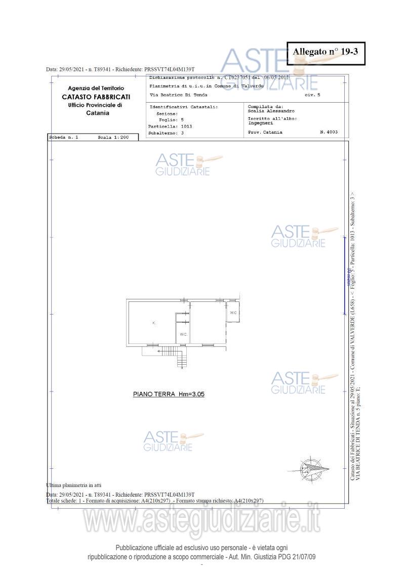 Vendita all'asta Senza incanto, con gara telematica sincrona mista - LOTTO 3: Diritti di proprietà su unità immobiliare di tipo residenziale sita nel Comune di Valverde (CT), via Beatrice di Tenda n° 7, piano terra, censita al catasto fabbricati del Comune di Valverde (CT) al foglio 5, particella 1013 subalterno 3, cat. A/2, classe 8, di vani 4,0, rendita catastale € 330,53 e foglio 5, particella 1013 subalterno 4, cat. A/2, classe 8, di vani 1,5, rendita catastale € 123,95. Prezzo base € 56.250,00 (offerta minima € 42.187,50). Data vendita 07/05/2026 ore 16:00. Professionista delegato alla vendita Avv. Marco Ossino - Email "avvocatomarcoossino@gmail.com"; Cell. 3402477593; Tel. 0958037539. Custode Giudiziario Avv. Marco Ossino - Email "avvocatomarcoossino@gmail.com"; Cell. 3402477593; Tel. 0958037539. Rif. Tribunale di Catania - Esecuzione immobiliare post legge 80 n. 330/2018