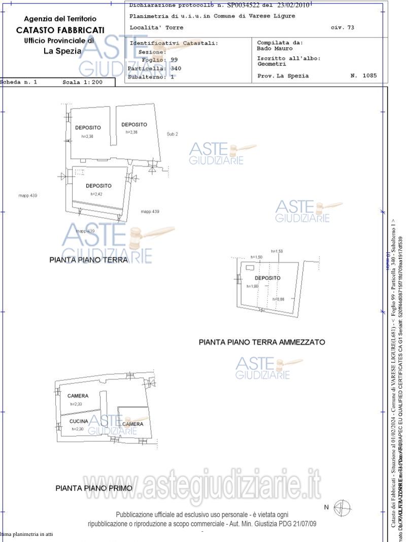 Vendita all'asta Senza incanto, con gara telematica sincrona mista - LOTTO UNICO: Appartamento ubicato a Varese Ligure (SP) – Località Torre 73, piano terra, ammezzato, primo.Area urbana, prossima all’appartamento, sita in Varese Ligure, Località Torre, di mq 100. Prato sito in Varese Ligure, Località Torre, di mq 5.200,00, adiacente alla particella 439. Prezzo base € 17.111,25 (offerta minima € 12.833,43). Data vendita 17/06/2026 ore 12:00. Professionista delegato alla vendita Dott. Raffaella Lombardo - Email "raffaella_lombardo@virgilio.it"; Tel. 0108399377. Custode Giudiziario Dott. Sovemo - Email "immobiliare@sovemo.com". Rif. Tribunale di Genova - Espropriazione immobiliare (cartabia) n. 473/2023
