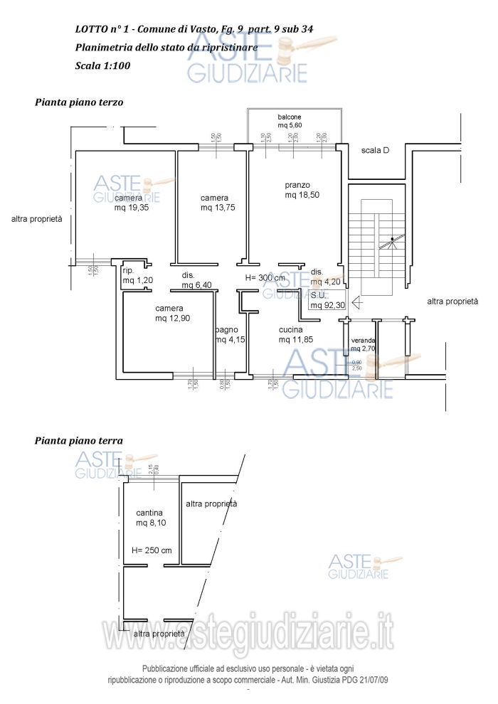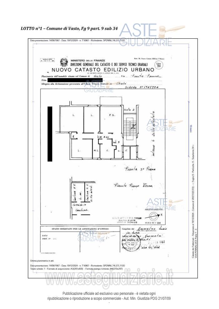 Vendita all'asta Senza incanto, con gara telematica asincrona - LOTTO UNICO:  Diritti di proprietà 1/1 su unità immobiliare sita in Vasto (CH) alla Via Penna Luce, e precisamente: appartamento al terzo piano, composto da soggiorno, cucina, 3 camere da letto, 1 locale wc, 1 ripostiglio, con balcone ed annessa cantina al piano terra. Prezzo base € 53.000,00 (offerta minima € 39.750,00). Data inizio operazioni di vendita: 13/01/2026 ore 16:00. Giudice Tommaso David. Professionista delegato alla vendita Avv. Umberto Del Re - Email "delrestudiolegale@gmail.com"; Cell. 3294598614; Tel. 0873637. Custode Giudiziario  Ivg Abruzzo - Email "ivgpescara1@gmail.com"; Cell. 3666892779; Tel. 0859436430.  Rif. Tribunale di Vasto - Esecuzione immobiliare post legge 80 n. 51/2024