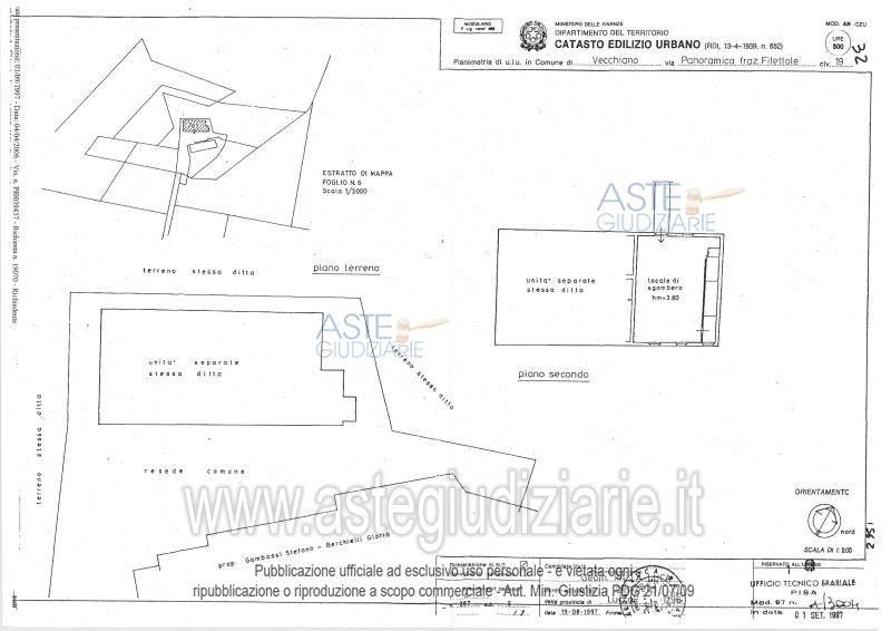 Vendita all'asta Senza incanto, con gara telematica sincrona mista - LOTTO UNICO: Lotto unico In Comune di Vecchiano, frazione Filettole, via Panoramica numero civico 19, piena proprietà delle seguenti unità immobiliari, facenti parte di uno stesso maggior fabbricato di vecchia realizzazione di tipo rustico con annesso resede e corredato da vari appezzamenti di terreno agricolo collinare:ai piani terreno, primo e secondo del maggior fabbricato, due appartamenti; tre locali di cui uno ad uso cantina con adiacente forno e ripostiglio, e due indicati catastalmente come locali di sgombero. Prezzo base € 381.000,00 (offerta minima € 285.750,00). Data vendita 22/04/2026 ore 09:30. Giudice Marco Zinna. Professionista delegato alla vendita Not. Cesare Bartolini. Custode Giudiziario Dott. Cosimo Erriquez - Email "prenotazionipisa@astagiudiziaria.com". Rif. Tribunale di Pisa - Esecuzione immobiliari n. 64/2005