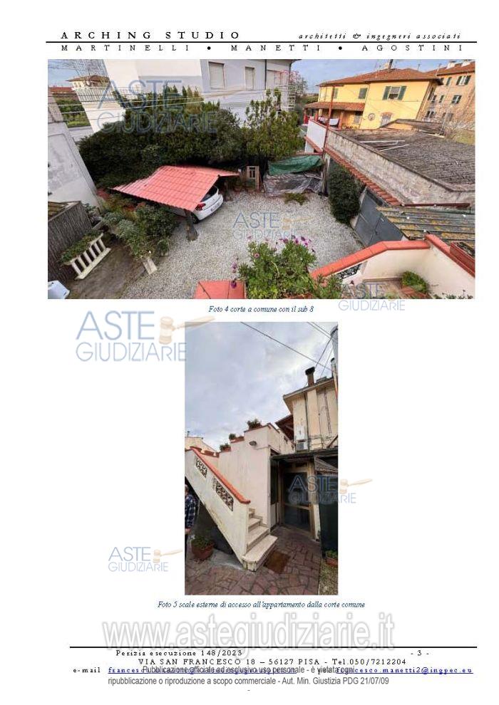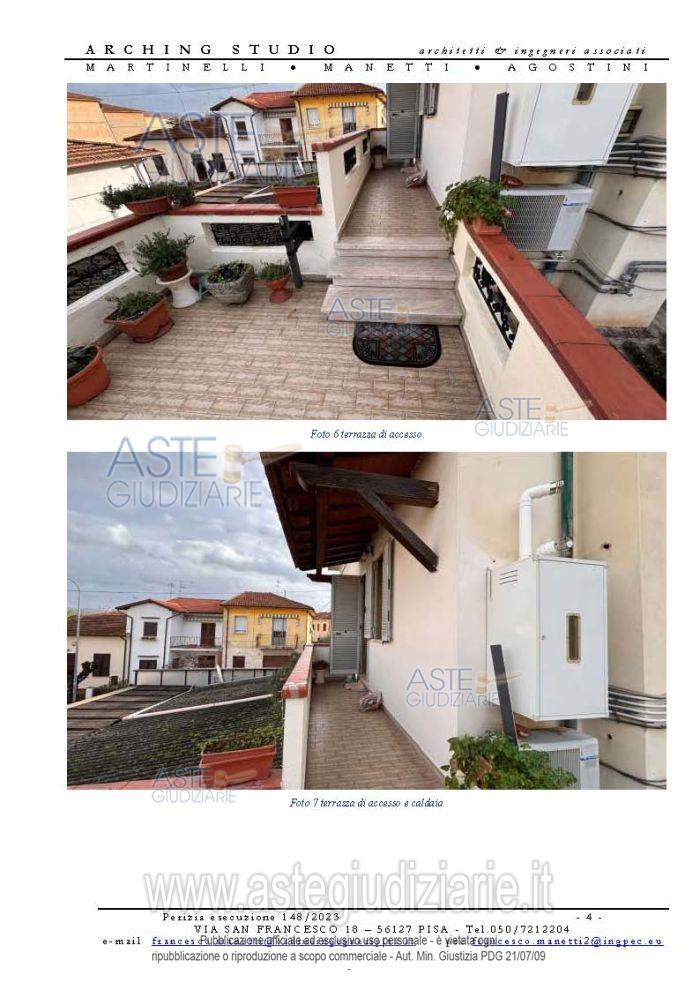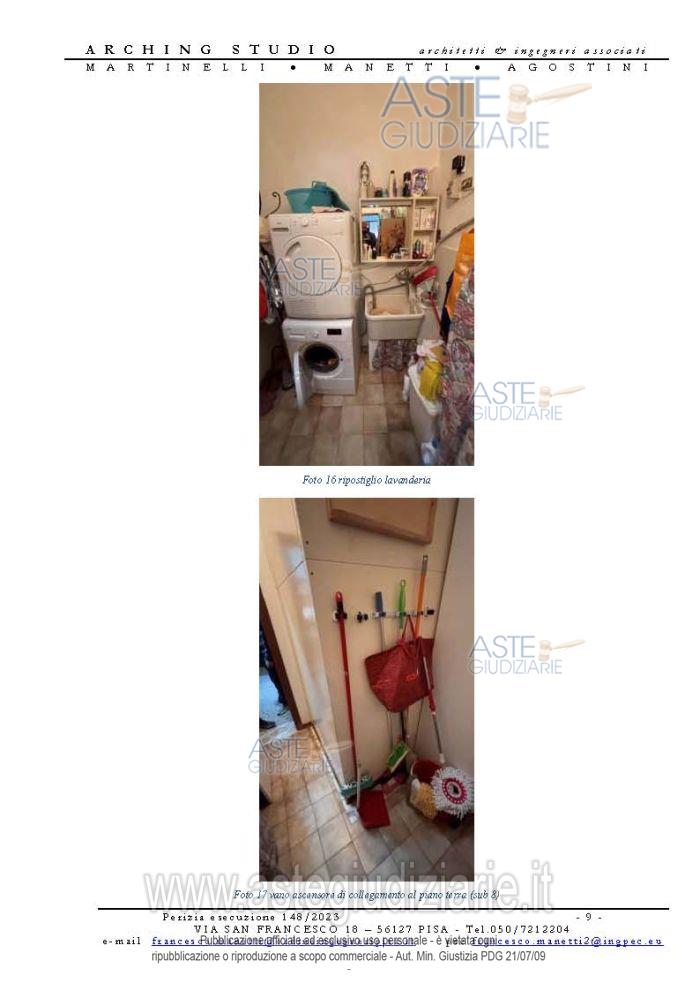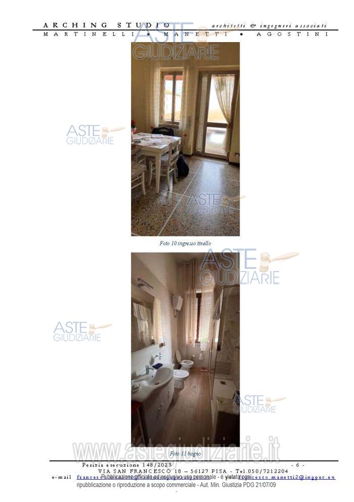 Vendita all'asta Senza incanto, con gara telematica asincrona - LOTTO UNICO: In Comune di Vecchiano, frazione Migliarino, Piazza G. Mazzini numero civico 18, al piano primo di maggior fabbricato, piena proprietà dell’intero di appartamento per civile abitazione, avente accesso tramite stradello pubblico, corte comune e scala esterna con terrazza, composto da ingresso, cucina, disimpegno, soggiorno, bagno, ripostiglio e tre camere, di cui una con terrazza; dal locale ripostiglio si accede, tramite ascensore, al locale posto al piano terra (sub. 8), non oggetto di vendita. Prezzo base € 154.000,00 (offerta minima € 115.500,00). Data inizio operazioni di vendita: 14/11/2025 ore 09:00. Giudice Marco Zinna. Professionista delegato alla vendita Not. Angelo Caccetta. Custode Giudiziario Dott. Cosimo Erriquez - Email "prenotazionipisa@astagiudiziaria.com". Rif. Tribunale di Pisa - Esecuzione immobiliare post legge 80 n. 148/2023