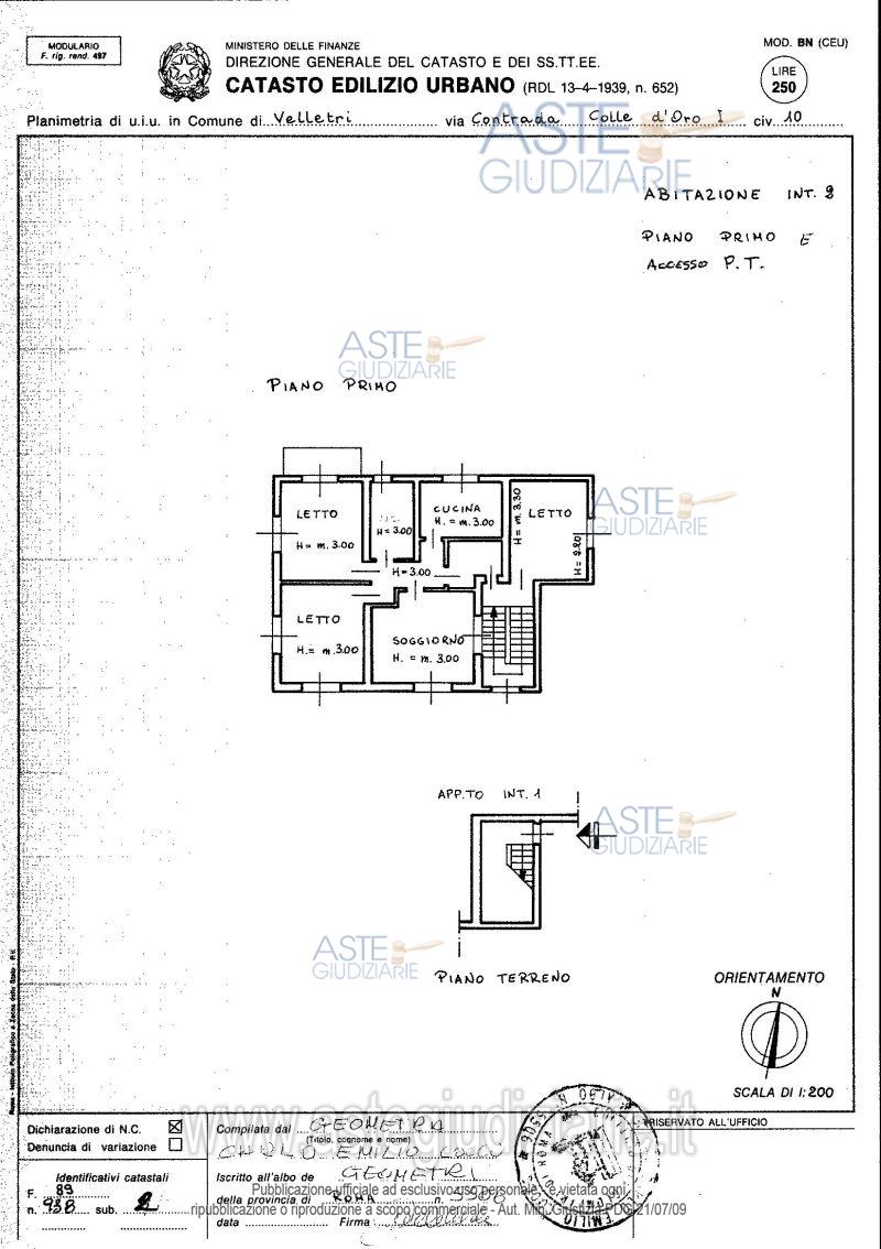 Vendita all'asta Senza incanto - LOTTO 1: Appartamento sito in Velletri in Via Colle d’oro n. 10 posto al piano terra e primo, interno 2, composto di vani catastali 6,5, confinante con detta via, proprietà Sciotti su tre lati, salvo altri, distinto al NCEU del predetto Comune al Fg 89 particella 938 sub. 2 categoria A/7 RC 553,90 e sul locale uso cantina della superficie catastale di mq 21, confinante come l’appartamento e distinto al NCEU del predetto Comune al Fg 89 particella 938 sub 3 categoria C/2 R.C. 32,54.