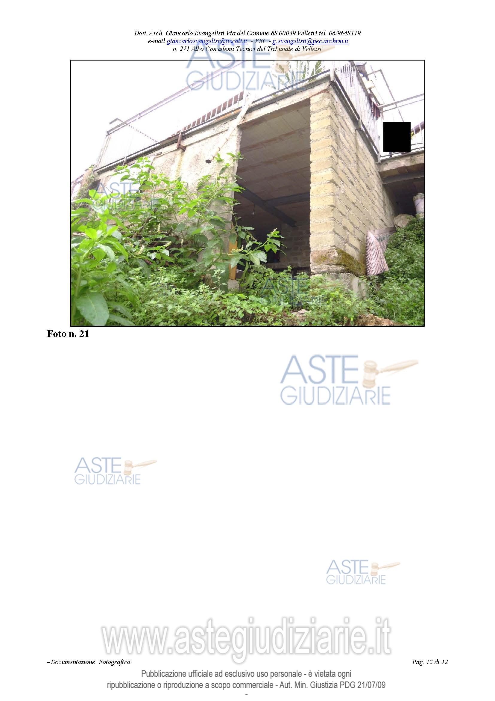 Vendita all'asta Senza incanto, con gara telematica asincrona - LOTTO UNICO: Trattasi di fabbricato unifamiliare senza parti in comunione e più precisamente abitazione al piano terra composta dasoggiorno con angolo cottura, bagno e due stanze, con annesso cortile e terrazzo a livello della superficie di circa mq 110,00 e restante area incolta ad uso esclusiva della superficie di mq 250,00 circa. Prezzo base € 42.000,00 (offerta minima € 31.500,00). Data inizio operazioni di vendita: 15/04/2026 ore 10:30. Giudice Dott. Di Serafino. Professionista delegato alla vendita Avv. Michela Del Monaco - Email "avvmicheladelmonaco@gmail.com". Custode Giudiziario Avv. Michela Del Monaco - Email "avvmicheladelmonaco@gmail.com". Rif. Tribunale di Velletri - Esecuzione immobiliare post legge 80 n. 166/2022