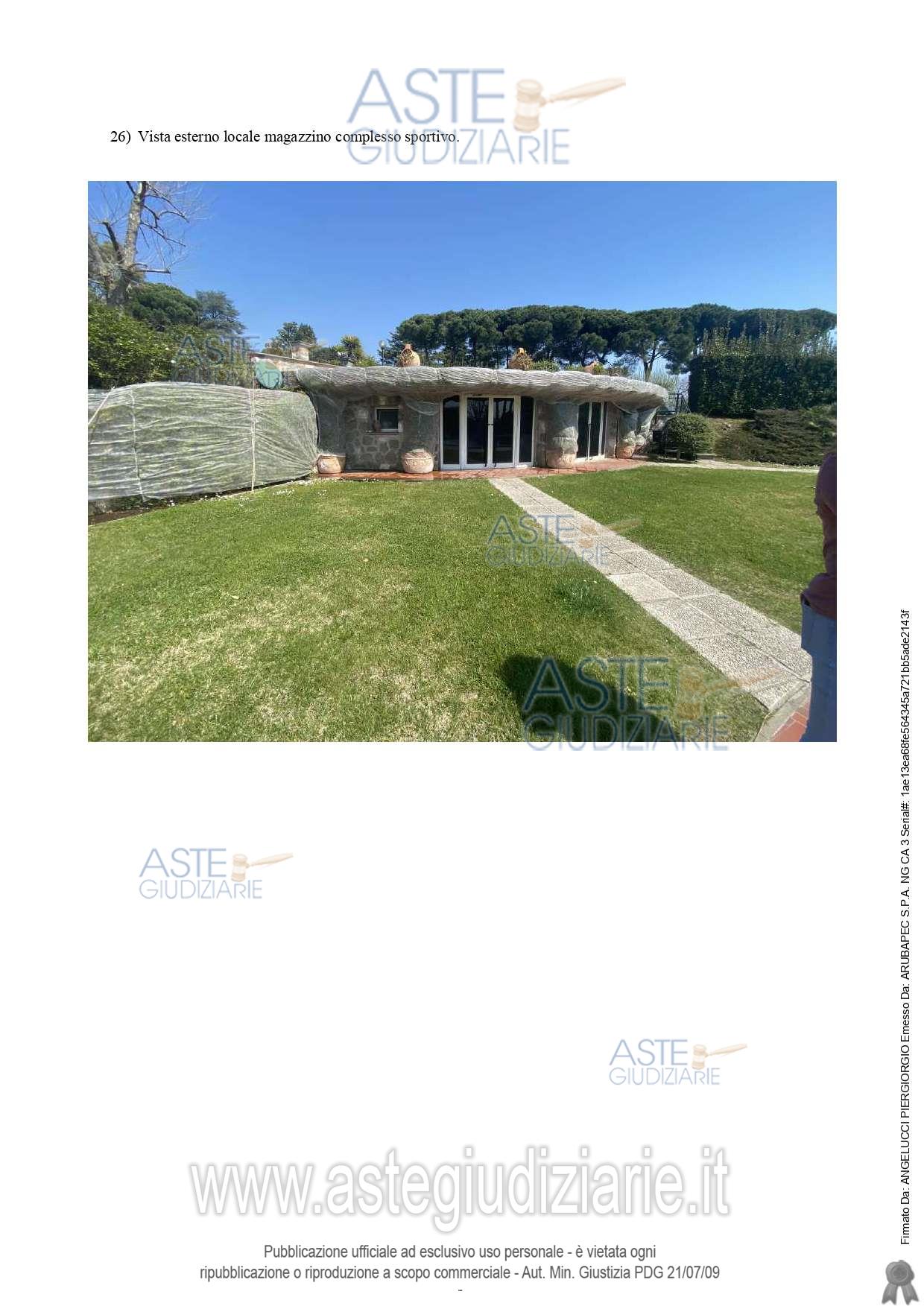 Vendita all'asta Senza incanto, con gara telematica asincrona - LOTTO UNICO: PIENA PROPRETA' DI PORZIONE DI VILLINO E QUOTA PARI AD 1/3 DELLA PROPRIETA' DI COMPLESSO SPORTIVO. Prezzo base € 381.000,00 (offerta minima € 285.750,00). Data inizio operazioni di vendita: 07/05/2026 ore 09:30. Professionista delegato alla vendita Avv. Giuliano Chiappa - Email "avv.giulianochiappa@alice.it"; Tel. 0693269188. Custode Giudiziario Avv. Giuliano Chiappa - Email "avv.giulianochiappa@alice.it"; Tel. 0693269188. Rif. Tribunale di Velletri - Esecuzione immobiliare post legge 80 n. 448/2021