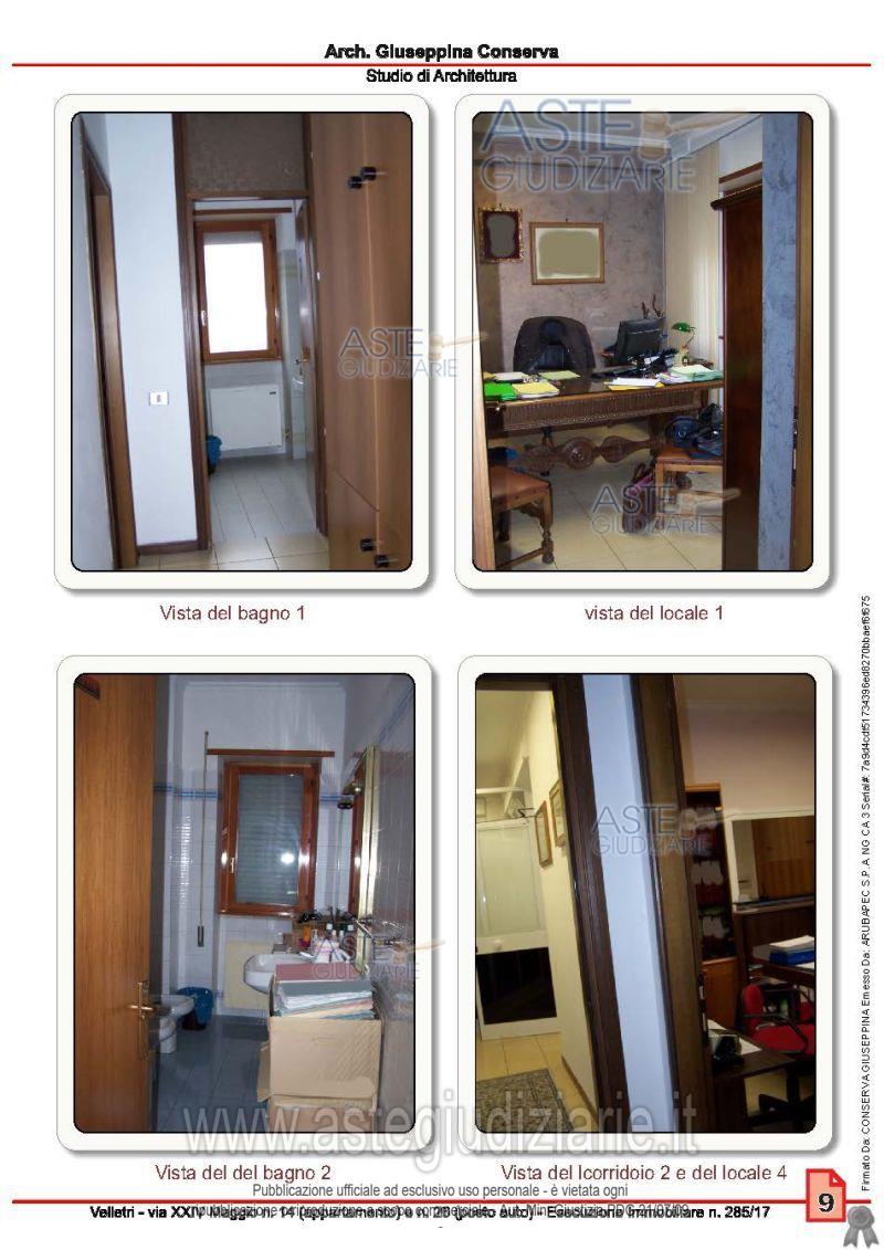 Vendita all'asta Senza incanto, con gara telematica asincrona - LOTTO 1: Appartamento ubicato a Velletri (Rm) Via XXIV maggio n. 14 , edificio A , interno 7 piano Primo. Appartamento adibito attualmente ad uso ufficio anche se urbanisticamente e catastalmente è ad uso residenziale. Prezzo base € 200.000,00 (offerta minima € 150.000,00). Data inizio operazioni di vendita: 16/01/2026 ore 09:30. Giudice Dott. Raffaella Calvanese. Professionista delegato alla vendita Avv. Maria Gabriella Giallanella. Custode Giudiziario Avv. Maria Gabriella Giallanella - Email "giallalex2@libero.it"; Tel. 069631623. Rif. Tribunale di Velletri - Esecuzione immobiliare post legge 80 n. 285/2017