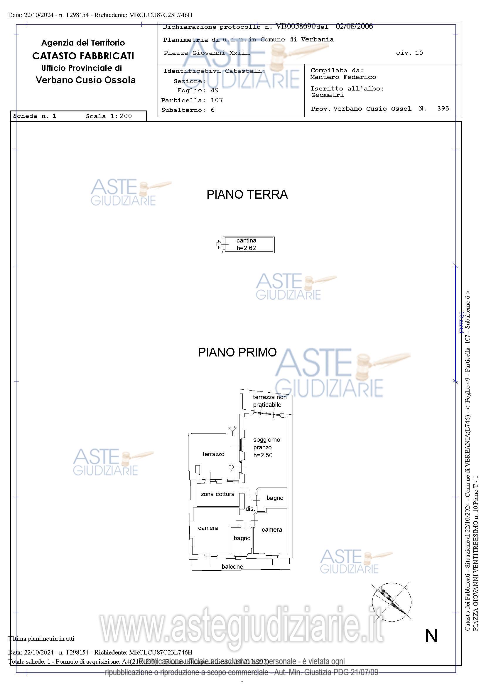 Vendita all'asta Senza incanto, con gara telematica asincrona - LOTTO 2: L'immobile oggetto di perizia è un appartamento sito nel Comune di Verbania, in Piazza Giovanni XXIII n. 10, individuato al catasto fabbricati al foglio 49, mappale 107, sub 6 e catasto terreni al foglio 81, mappale 143. L'appartamento individuato al piano primo del fabbricato è composto da soggiorno/pranzo, locale cottura, n. 2 bagni, n. 2 camere da letto di cui una matrimoniale, disimpegno, n. 1 balcone, n. 1 terrazzo e cantina posizionata al piano terreno dell'edificio. Prezzo base € 193.000,00 (offerta minima € 144.750,00). Data inizio operazioni di vendita: 19/12/2025 ore 10:00. Giudice Dott. Caterina Sinico. Custode Giudiziario Aste Giudiziarie Inlinea Spa - Email "ufficiocustodie@astegiudiziarie.it". Rif. Tribunale di Verbania - Espropriazione immobiliare (cartabia) n. 63/2023