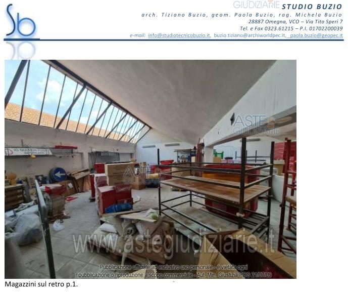 Vendita all'asta Senza incanto, con gara telematica asincrona - LOTTO 1: Fabbricato Commerciale, composto da uffici, disimpegno e retrostante capannone a due piani e Appartamento, formato da abitazione del custode al piano primo. Prezzo base € 751.840,00 (offerta minima € 563.880,00). Data inizio operazioni di vendita: 23/06/2026 ore 10:00. Giudice Caterina Sinico. Custode Giudiziario Avv. Riccardo Sappa - Email "riccardo.sappa@studiosas.eu"; Tel. 0323345835. Curatore Avv. Riccardo Sappa. Rif. Tribunale di Verbania - Liquidazione giudiziale(cci) n. 14/2024