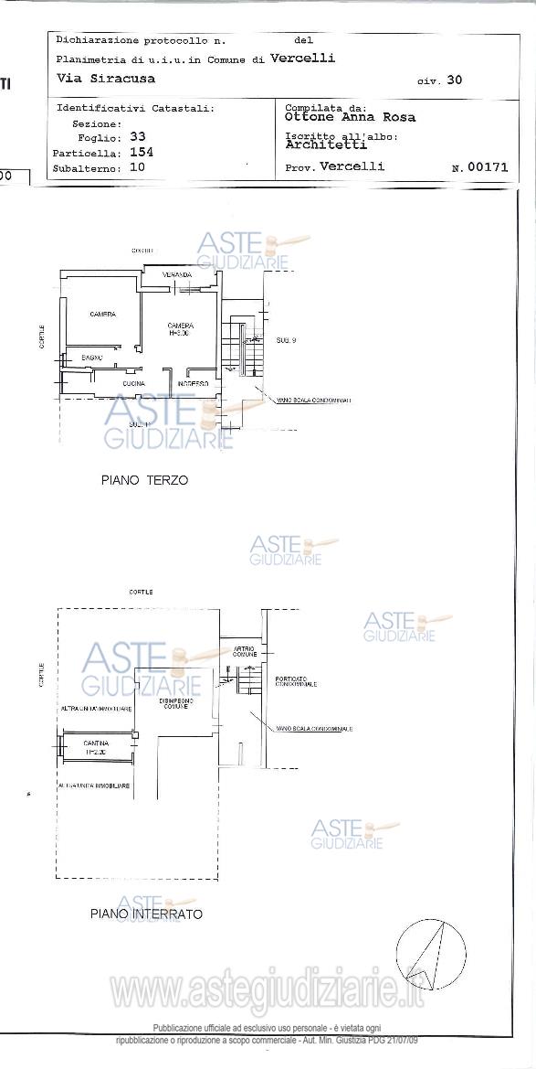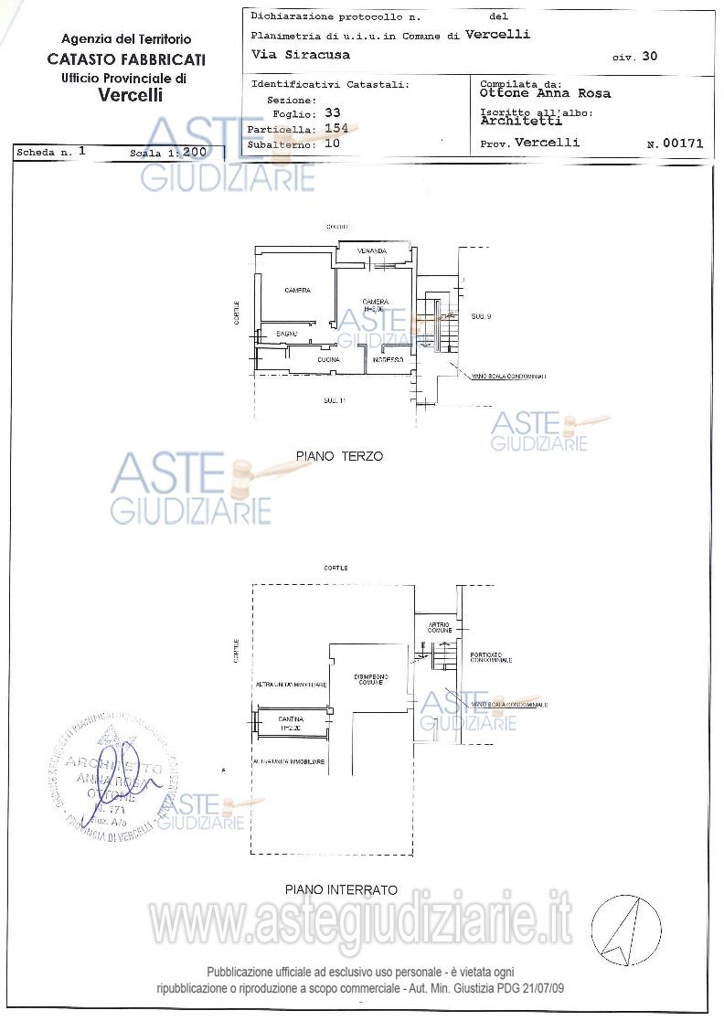 Vendita all'asta Senza incanto, con gara telematica asincrona - LOTTO UNICO: In Comune di Vercelli Via Siracusa 30 alloggio facente parte di complesso condominiale denominato Condominio Siracusa posto al piano 3° (4° fuori terra) composto da ingresso, soggiorno, cucinino, disimpegno, camera da letto, bagno e veranda; con cantina pertinenziale situata al piano seminterrato. Prezzo base € 25.669,00 (offerta minima € 19.251,75). Data inizio operazioni di vendita: 17/02/2026 ore 16:00. Professionista delegato alla vendita Avv. Stefano Carecchio - Email "avv.s.carecchio@gmail.com". Custode Giudiziario Avv. Stefano Carecchio - Email "avv.s.carecchio@gmail.com". Rif. Tribunale di Vercelli - Espropriazione immobiliare (cartabia) n. 38/2025