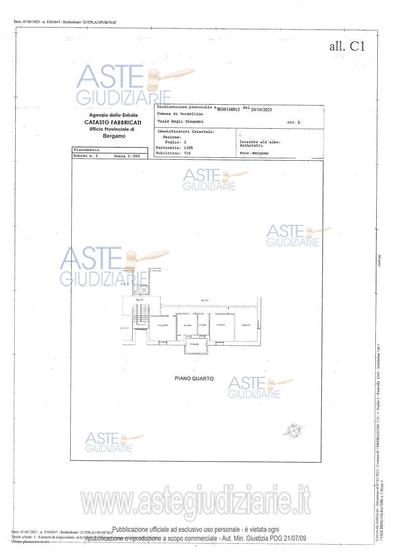 Vendita all'asta Senza incanto, con gara telematica asincrona - LOTTO UNICO: Abitazione al piano quarto ed autorimessa al piano terra, parti di un edificio residenziale di cinque piani fuori terra ultimato nell'anno 1973 e oggetto di rifacimento e coibentazione facciate nell'anno 2023. L'abitazione al quarto piano è così composta: vano ingresso, soggiorno, cucina con piccolo ripostiglio, n.2 camere, bagno, disimpegno notte e balcone. La superficie complessiva è di circa mq 131,00.L'autorimessa al piano terra è ampia e adeguata al ricovero di un'autovettura di grandi dimensioni. Prezzo base € 59.947,00 (offerta minima € 44.960,25). Data inizio operazioni di vendita: 15/01/2026 ore 15:30. Giudice Vincenzo Domenico Scibetta. Professionista delegato alla vendita Dott. Filippo Sodo - Email "procedure@studiosodo.eu"; Tel. 035221575. Custode Giudiziario V.G.C. S.R.L. - Email "immobiliare@ivgbergamo.it"; Tel. 0350763005. Rif. Tribunale di Bergamo - Espropriazione immobiliare (cartabia) n. 52/2025