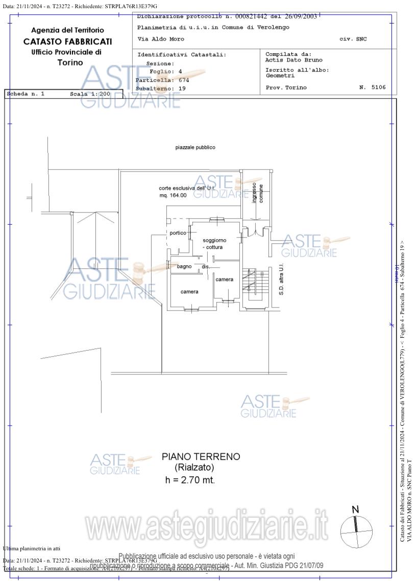 Vendita all'asta Senza incanto, con gara telematica asincrona - LOTTO UNICO: Appartamento al piano terra rialzato composto da zona giorno, due camere, servizio, portico, area esterna esclusiva recintata parzialmente pavimentata. Prezzo base € 85.740,51 (offerta minima € 64.305,39). Data inizio operazioni di vendita: 04/11/2025 ore 10:00. Giudice Dott. Augusto Salustri. Professionista delegato alla vendita Avv. Angioletta Bertoldo. Custode Giudiziario Avv. Angioletta Bertoldo - Email "a.bertoldo@studiolegalebertoldo.it". Rif. Tribunale di Ivrea - Espropriazione immobiliare (cartabia) n. 212/2024