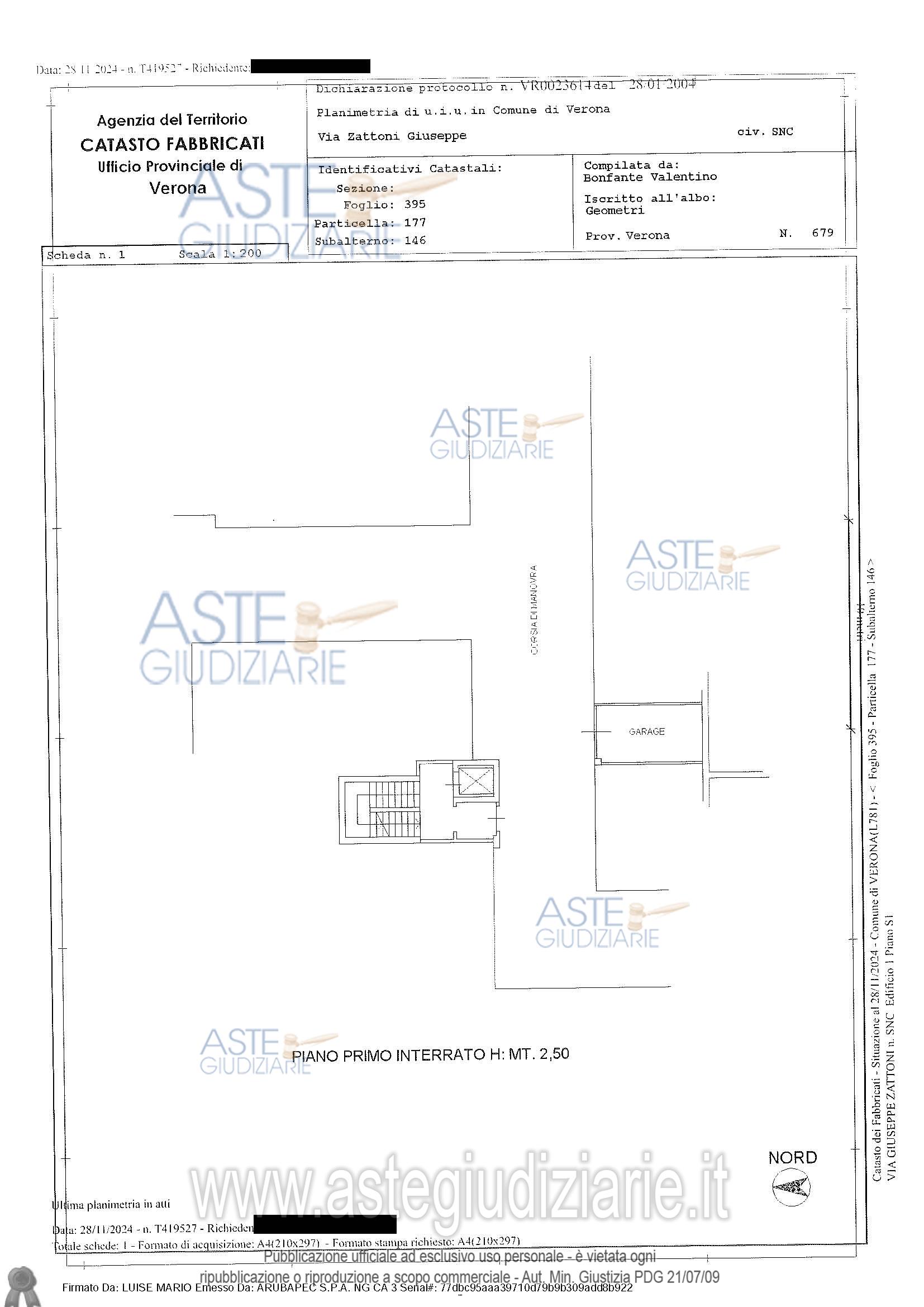 Vendita all'asta Senza incanto, con gara telematica sincrona mista - LOTTO UNICO:  Piena ed intera proprietà di appartamento situato al piano terzo di edificio condominiale  (superficie commerciale di circa mq. 46,90) con autorimessa al piano interrato (superficie commerciale di circa mq. 15,17). Prezzo base € 81.500,00 (offerta minima € 61.125,00). Data vendita 11/11/2025 ore 09:15. Professionista delegato alla vendita Avv. Avv. Stefano Rossi - Email "stefano.rossi@studiodalfini.it"; Tel. 045590548. Custode Giudiziario Avv Giuliano Maffi - Email "g.maffi@lgmstudio.it"; Tel. 0458036667.  Rif. Tribunale di Verona - Espropriazione immobiliare (cartabia) n. 265/2024
