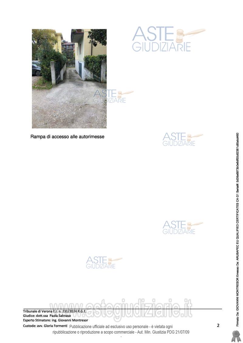 pertinenziale site al piano seminterrato. Prezzo base € 193.300,00 (offerta minima € 144.975,00). Data vendita 20/05/2026 ore 15:40. Professionista delegato alla vendita Not. Ludovica Piro - Email "segreteria@notaiveronesiassociati.it"; Tel. 045/8530137. Custode Giudiziario Avv. Gloria Formenti - Email "avvgloriaformenti@gmail.com". Rif. Tribunale di Verona - Esecuzione immobiliare n. 231/2024