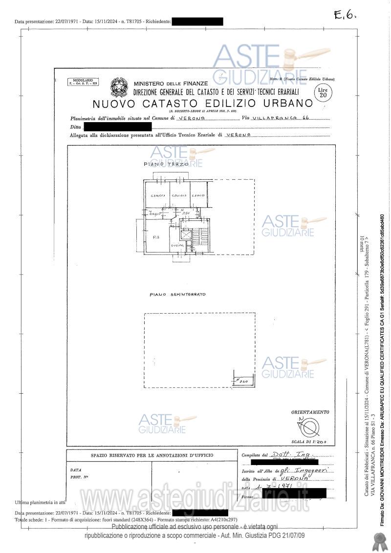 Vendita all'asta Senza incanto, con gara telematica sincrona mista - LOTTO Unico: All'interno del fabbricato condominiale denominato "Condominio Gemini", piena proprietà di appartamento al piano terzo con annessa cantina e con ampia autorimessa