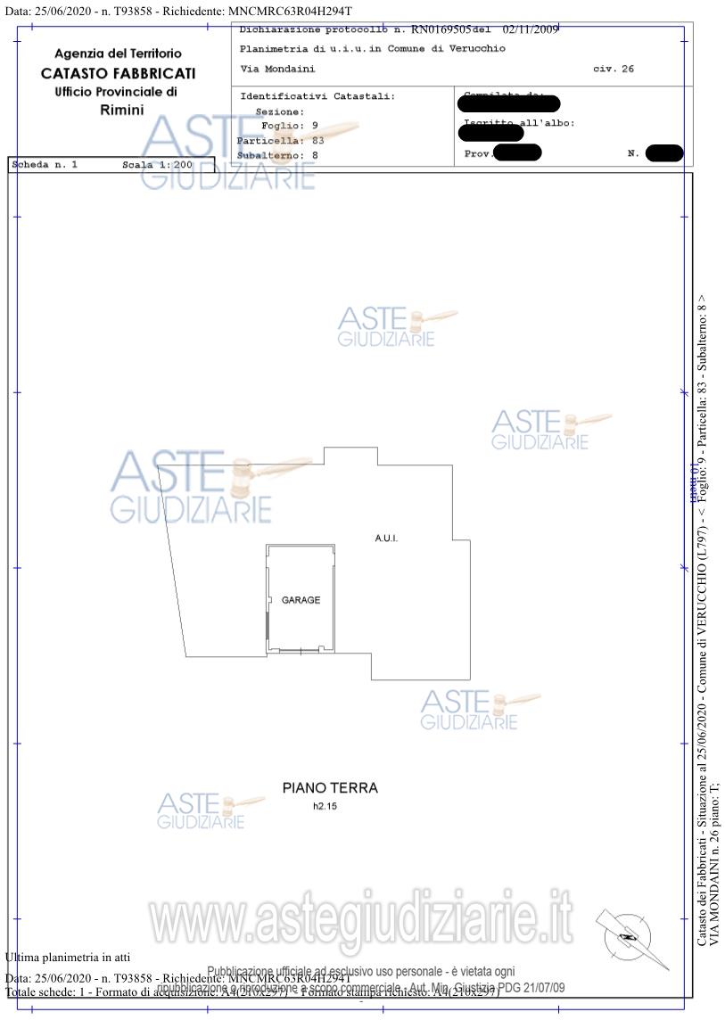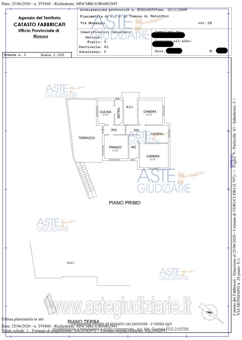 Vendita all'asta Senza incanto, con gara telematica sincrona mista - LOTTO UNICO: La piena proprietà di porzioni del fabbricato urbano condominiale sito in Comune di Verucchio (RN), località Villa Verucchio, Via Mondaini n. 26/28, costituite da:= un appartamento ad uso civile abitazione, sito al piano primo, = un garage al piano terra, pertinenziale all'appartamento = un garage al piano terra, pertinenziale all'appartamento. Prezzo base € 177.030,00 (offerta minima € 177.030,00). Data vendita 20/01/2026 ore 16:00. Rif. Tribunale di Rimini - Liquidazione controllata(cci) n. 25/2024