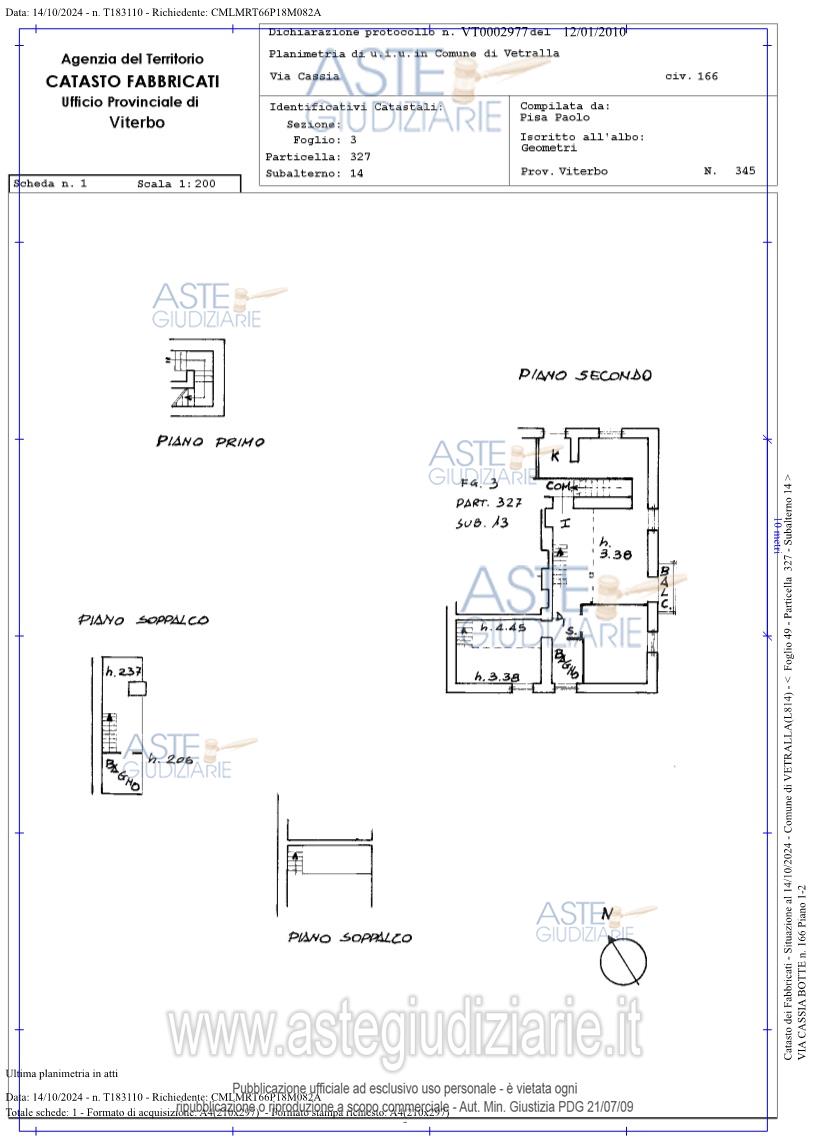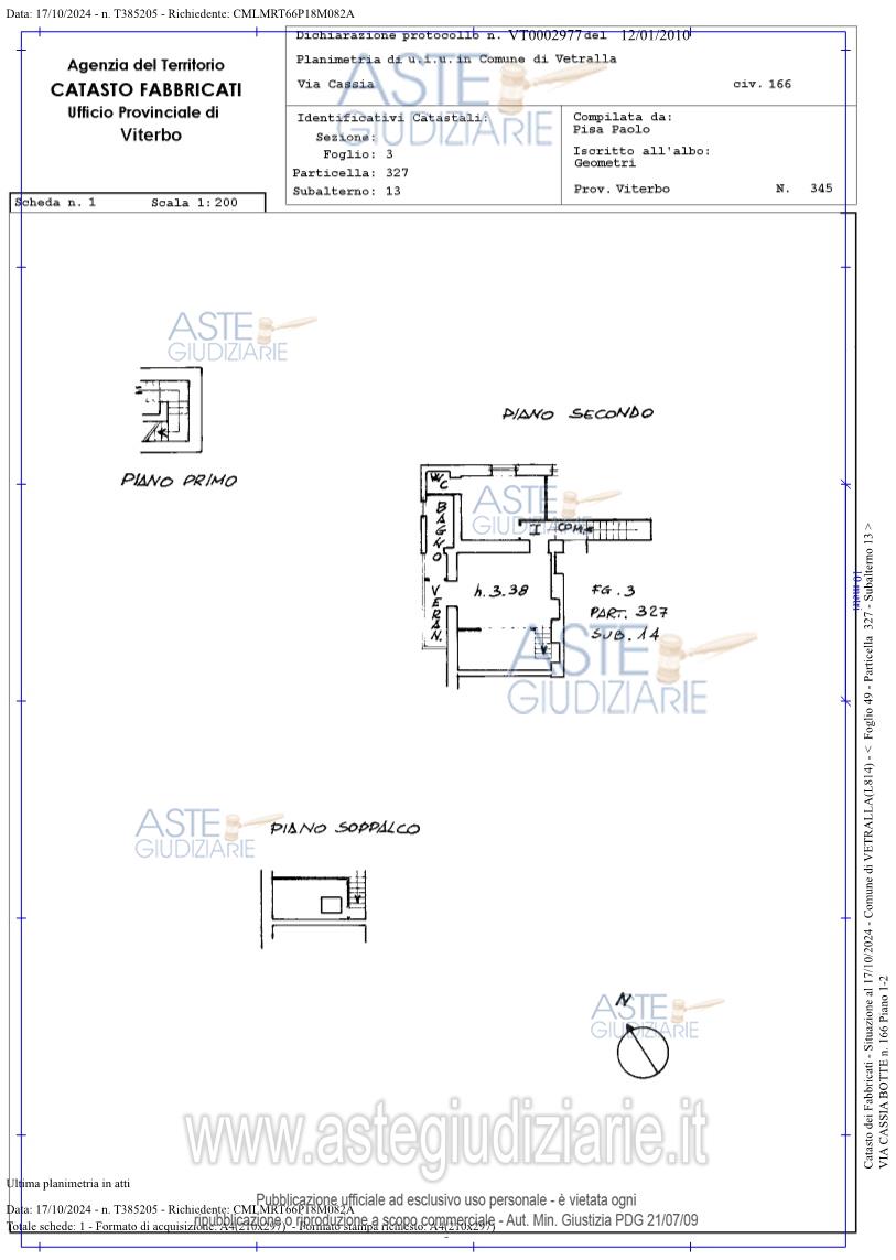 Vendita all'asta Senza incanto, con gara telematica asincrona - LOTTO UNICO: Abitazione sita nel Comune di Vetralla (Vt) Frazione La Cura, via Cassia Botte 166 (portone d’ingresso attualmente identificato con il numero 162G), Cat. Fab. foglio 49, particella 327 sub. 13 (A/2, Classe 2, 4,0 vani, Rendita 361,52 €, superficie utile lorda interna di mq 40,50 oltre a soppalco di mq 8,10 e balcone di mq 5,40) e sub. 14 (A/2 Classe 2, 5,5 vani, Rendita 497,09 €, superficie utile lorda interna di mq 90,70 oltre a soppalchi di mq 21,00 e un balcone di mq 2,80). Prezzo base € 77.500,00 (offerta minima € 58.125,00). Data inizio operazioni di vendita: 29/04/2026 ore 10:40. Giudice Federico Bonato. Professionista delegato alla vendita Avv. Simone Cima - Email "studiolegalecima@gmail.com"; Tel. 0761321245. Custode Giudiziario Avv. Simone Cima - Email "studiolegalecima@gmail.com"; Tel. 0761321245. Rif. Tribunale di Viterbo - Espropriazione immobiliare (cartabia) n. 102/2024