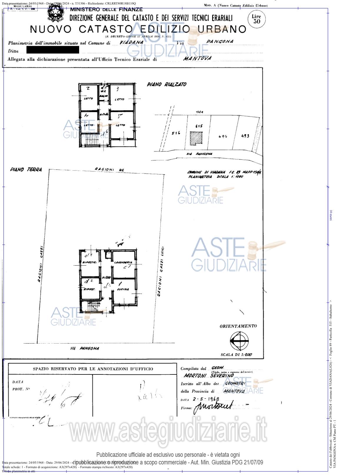 Vendita all'asta Senza incanto, con gara telematica sincrona mista - LOTTO UNICO: NUDA PROPRIETA' Abitazione unifamigliare su due livelli con area cortiva pertinenziale su 4 lati, in Viadana (MN) Via Pangona n. 20-22. Prezzo base € 32.300,00 (offerta minima € 24.225,00). Data vendita 15/10/2025 ore 11:00. Professionista delegato alla vendita Dott. Rosa Russo - Email "STUDIOROSARUSSO@GMAIL.COM"; Cell. 3474956886; Tel. 0376534499. Custode Giudiziario So.Ve.Mo. Srl - Email "immobiliaremantova@sovemo.com"; Tel. 0376220694. Rif. Tribunale di Mantova - Espropriazione immobiliare (cartabia) n. 123/2024