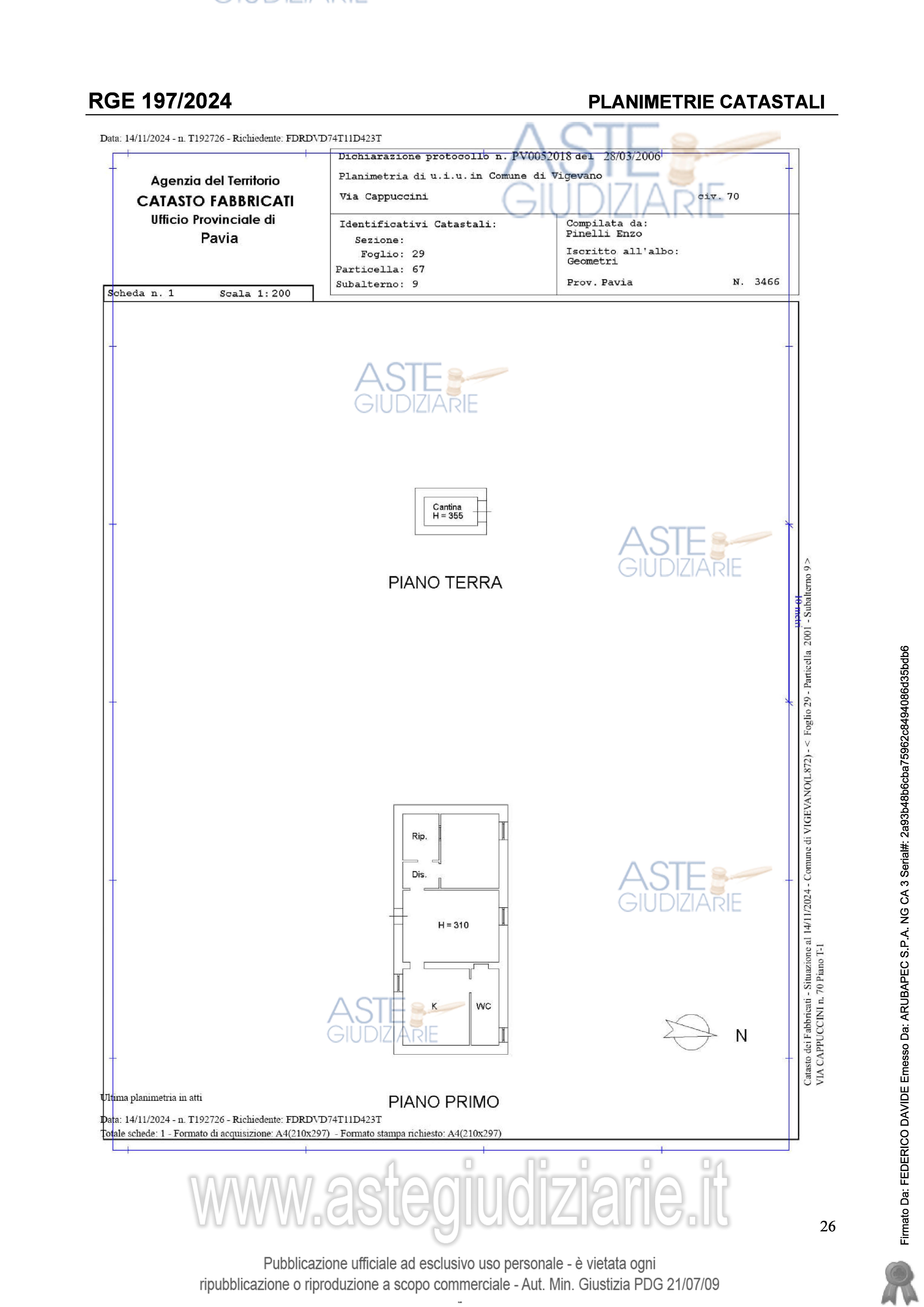 Vendita all'asta Senza incanto, con gara telematica asincrona - LOTTO UNICO: APPARTAMENTO sito al piano primo di un fabbricato residenziale della tipologia di casa di corte, sviluppato su un totale di due livelli fuori terra e servito da corpo scala esterno. Prezzo base € 28.491,00 (offerta minima € 21.368,00). Data inizio operazioni di vendita: 06/05/2026 ore 16:00. Giudice Dott. Francesca Paola Claris Appiani. Professionista delegato alla vendita Avv. Enrico Bettaglio. Custode Giudiziario Istituto Vendite Giudiziarie Di Vigevano - Email "immobiliarivigevano@ifir.it"; Tel. 0381691137. Rif. Tribunale di Pavia - Espropriazione immobiliare (cartabia) n. 197/2024