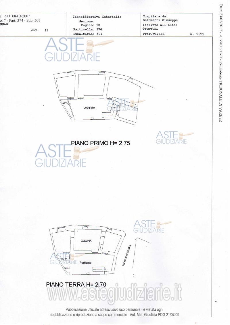 Vendita in attesa dell'emissione del nuovo bando d'asta. LOTTO UNICO: Immobile a uso abitativo al piano primo e secondo, con acclusi vani vuoti al piano terreno allo stato rustico. Ultimo prezzo base € 42.187,50 (offerta minima € 31.640,63). Giudice Giacomo Puricelli. Professionista delegato alla vendita Avv. Matteo Matticchio - Email "matteo@lozzamatticchio.com"; Tel. 03321693834. Custode Giudiziario Givg Srl - Email "segreteria.va@givg.it"; Tel. 0332335510. Rif. Tribunale di Varese - Esecuzione immobiliare post legge 80 n. 400/2016