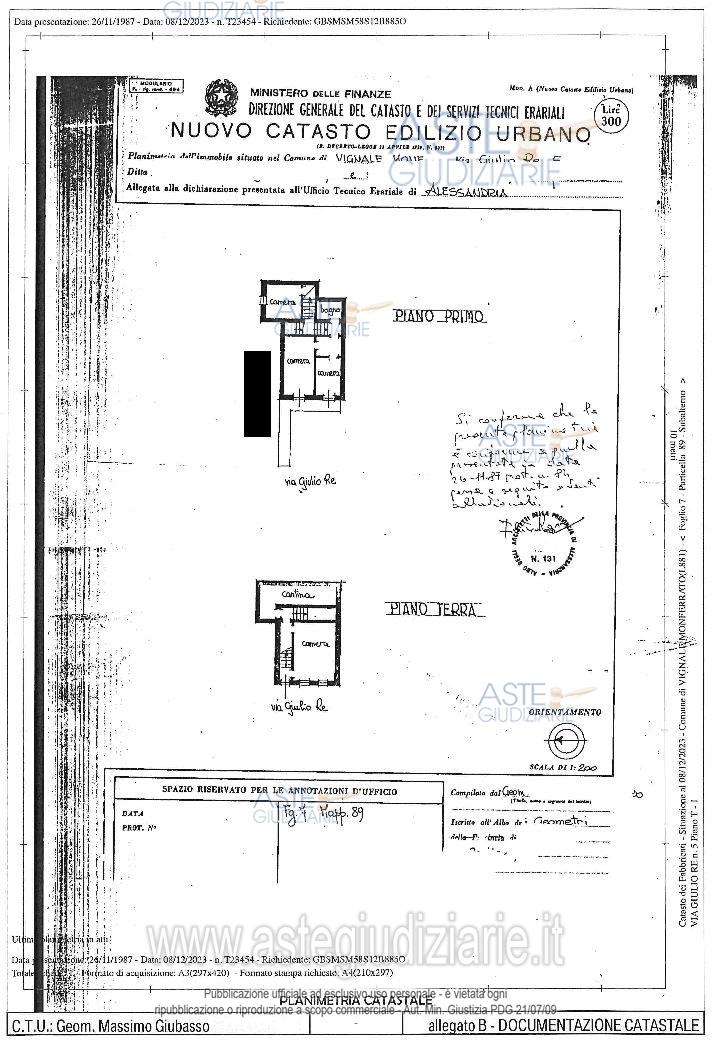 Vendita all'asta Senza incanto, con gara telematica asincrona - LOTTO UNICO: Trattasi di fabbricato residenziale, posto in Vignale Monferrato (Al) Via Giulio Re al civico 5, suddiviso su due piani e sottotetto (non praticabile), con cortile interno e piccolo lotto di terreno pertinenziale. Prezzo base € 37.050,00 (offerta minima € 27.787,50). Data inizio operazioni di vendita: 18/06/2026 ore 09:30. Giudice Annalisa Fanini. Professionista delegato alla vendita Avv. Daniele Capolupo - Email "cedars@cedarsassociati.it"; Tel. 0161250923. Custode Giudiziario Avv. Daniele Capolupo - Email "cedars@cedarsassociati.it"; Tel. 0161250923. Rif. Tribunale di Vercelli - Esecuzione immobiliare post legge 80 n. 137/2023