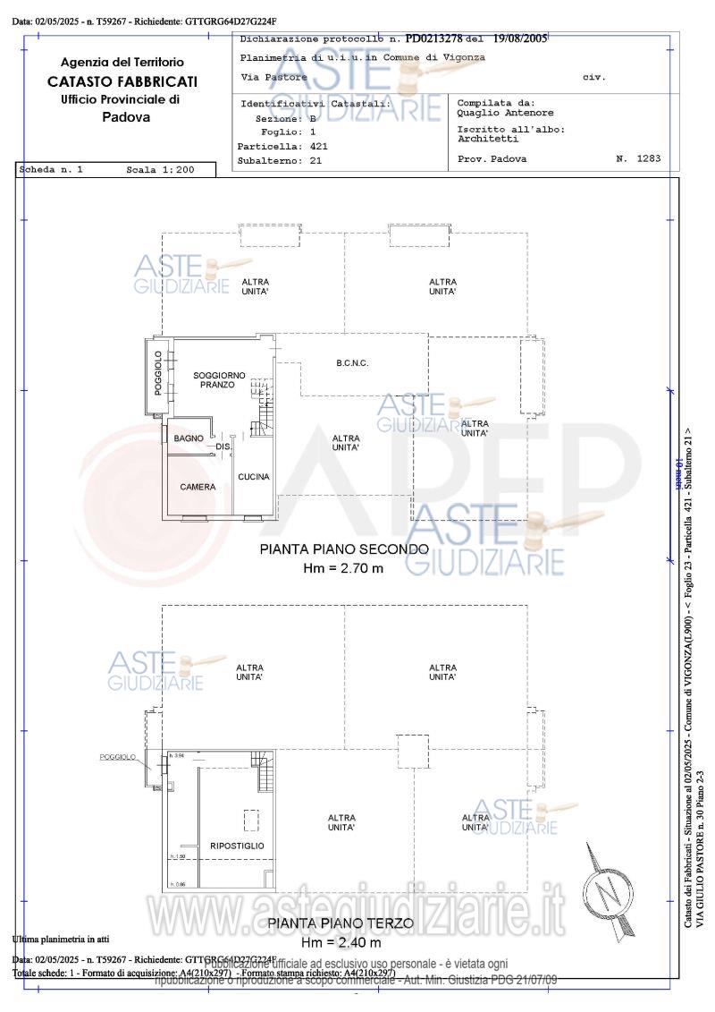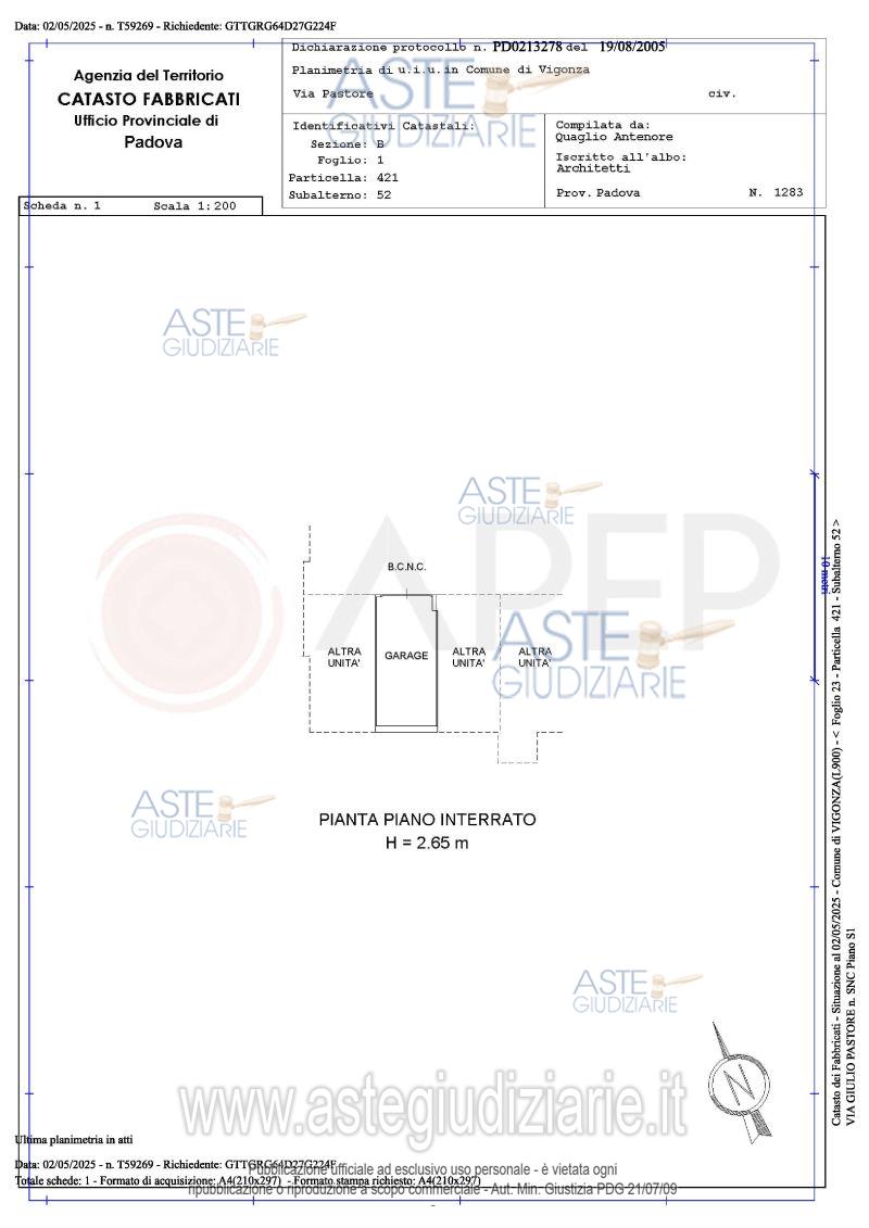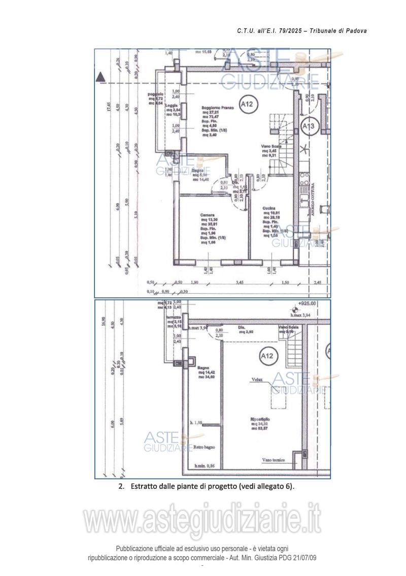 Vendita all'asta Senza incanto, con gara telematica sincrona - LOTTO UNICO: Lotto Unico - piena proprietà di unità immobiliari facenti parte del fabbricato condominiale denominato "Palazzina A", sito in Comune di Vigonza (PD), via Pastore n. 30 int. 12, edificato unitamente ad altro edificio sull'area descritta in C.T., Fg. 23, partic. 421 di are 19.24 E.U. e precisamente trattasi di un appartamento al piano secondo (angolo sud-ovest dell'edificio) con mansarda/ripostiglio al piano terzo e garage al piano interrato della superficie commerciale complessiva di mq. 110. Libero. Prezzo base € 125.000,00 (offerta minima € 93.750,00). Data vendita 05/03/2026 ore 14:15. Giudice Pasqualetto. Professionista delegato alla vendita Not. Filippo Rampazzo - Email "aste@apepnotai.it"; Tel. 049651228. Custode Giudiziario Apep - Email "visita@apepnotai.it"; Tel. 049651228. Rif. Tribunale di Padova - Espropriazione immobiliare (cartabia) n. 79/2025