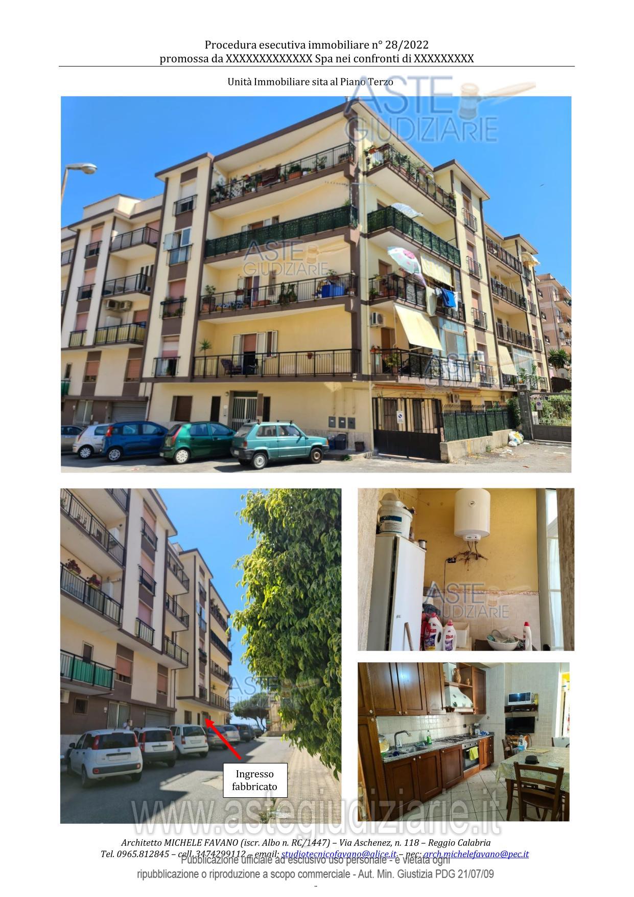 Vendita all'asta Senza incanto, con gara telematica asincrona - LOTTO 1: Diritto di piena proprietà - Unità immobiliare destinata ad abitazione civile posta al piano III° (IV° f.t.), interno 12, con annesso vano cantinato al piano seminterrato, del maggior fabbricato condominiale. Prezzo base € 96.000,00 (offerta minima € 72.000,00). Data inizio operazioni di vendita: 26/05/2026 ore 15:30. Giudice Dott. Francesco Maria Antonio Buggè. Professionista delegato alla vendita Avv. Elettra Cortese - Email "avv.ecortese@gmail.com"; Tel. 3473646306. Custode Giudiziario Avv. Elettra Cortese - Email "avv.ecortese@gmail.com"; Tel. 3473646306. Rif. Tribunale di Reggio di Calabria - Esecuzione immobiliare post legge 80 n. 28/2022