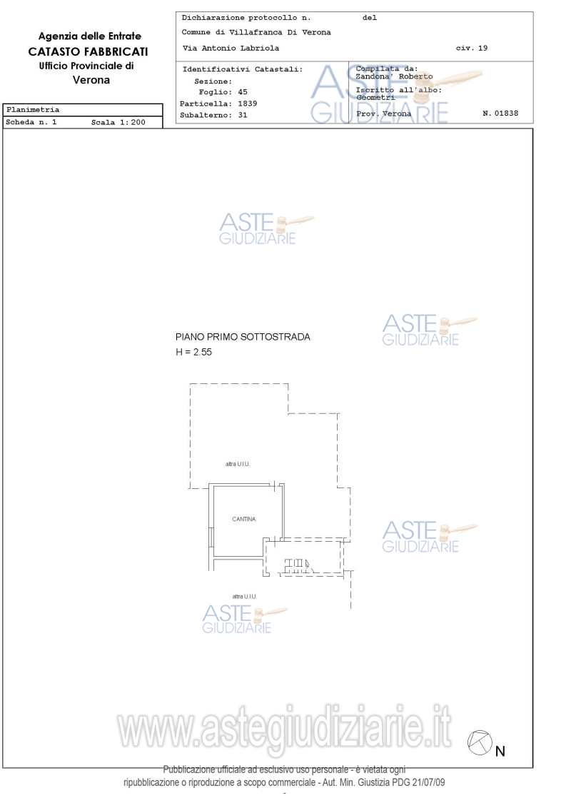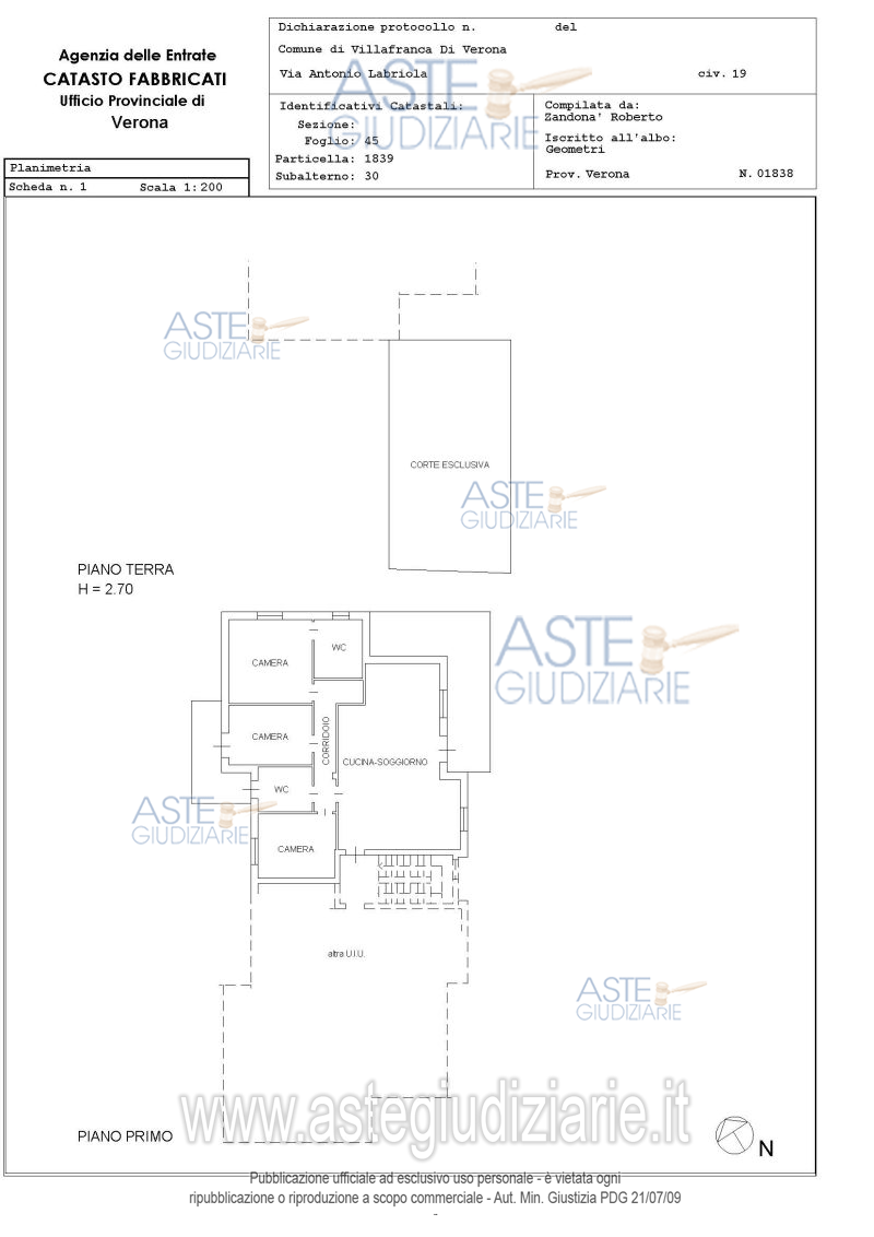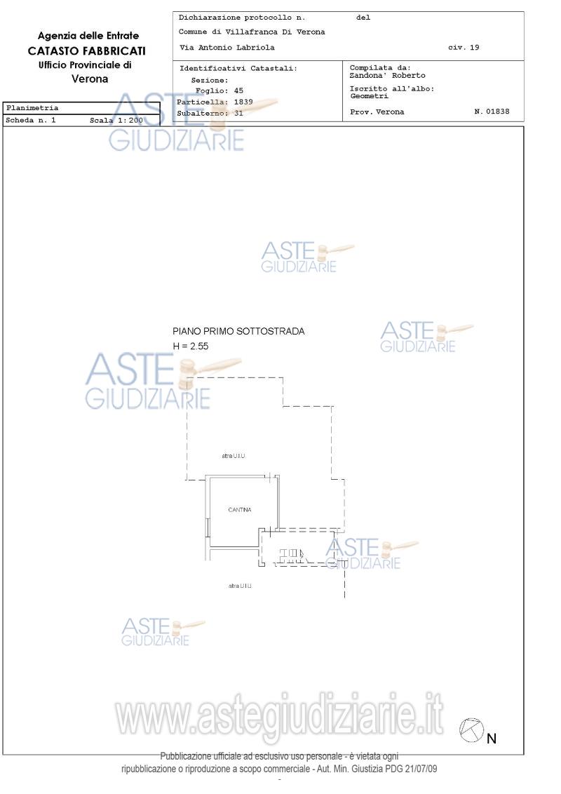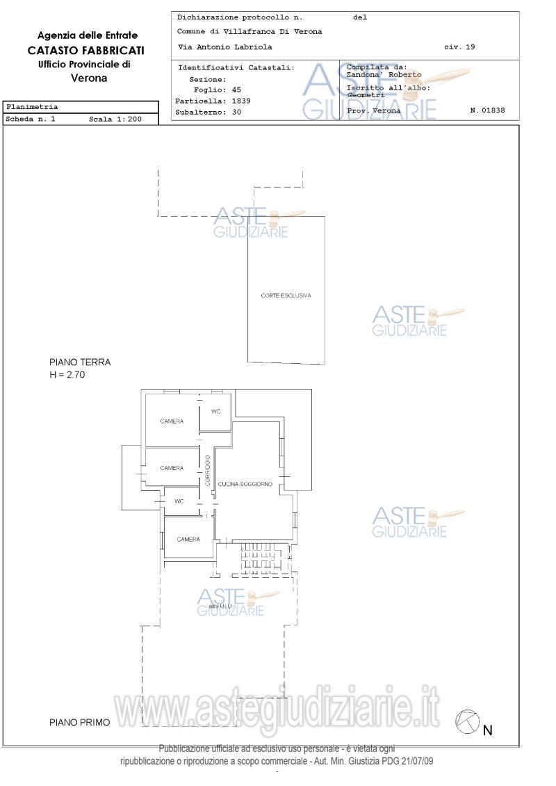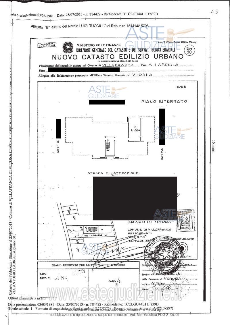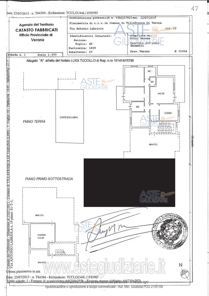 Vendita all'asta Senza incanto, con gara telematica sincrona mista - LOTTO UNICO: LOTTO UNICO - In Comune di Villafranca di Verona (VR), Via Antonio Labriola 19, piena proprietà di abitazione al piano primo di un edificio quadrifamiliare con corte esclusiva e autorimessa e cantina pertinenziali al piano seminterrato. Sono compresi nella vendita i proporzionali diritti di comproprietà su enti comuni e spazi di uso comune ai sensi dell’art. 1117 c.c., ivi compresa l’area di sedime e pertinenza del fabbricato, ed in particolare sul m.n. 1839 sub 16 - BCNC ai sub 2,3,4,6,7,8,9,26,30,31. Prezzo base € 300.000,00 (offerta minima € 225.000,00). Data vendita 28/05/2026 ore 15:00. Giudice Dott. Francesco Fontana. Professionista delegato alla vendita Dott. Luca Paolucci - Email "notes@notariato.it"; Tel. 0458006661. Custode Giudiziario Dott. Francesca Ferretto - Email "f.ferretto@libero.it"; Tel. 0458347388. Rif. Tribunale di Verona - Espropriazione immobiliare (cartabia) n. 162/2025