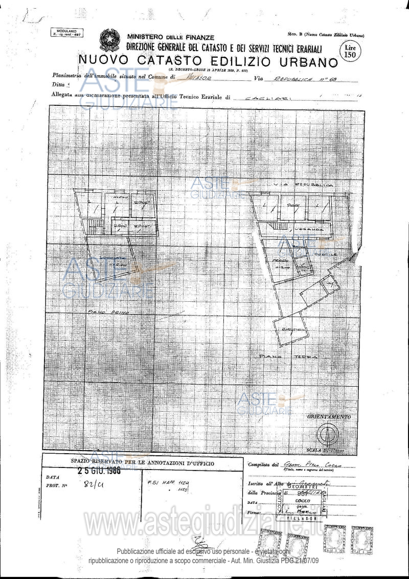 Vendita all'asta Senza incanto, con gara telematica asincrona - LOTTO UNICO: Quota pari all’intero del diritto proprietà sull’area della superficie di mq.600 con sovrastante fabbricato civile su due livelli con accesso dalla Via Cavour n.35, composto da locale di sgombero, magazzino, cortile al piano terra; abitazione al piano rialzato e abitazione al grezzo al piano primo. Prezzo base € 104.960,00 (offerta minima € 78.720,00). Data inizio operazioni di vendita: 25/03/2026 ore 09:00. Giudice Francesco De Giorgi. Professionista delegato alla vendita Not. Roberto Onano - Email "ufficiouniconotai@pec.it"; Tel. 07060222574. Rif. Tribunale di Cagliari - Esecuzione immobiliare post legge 80 n. 509/1994
