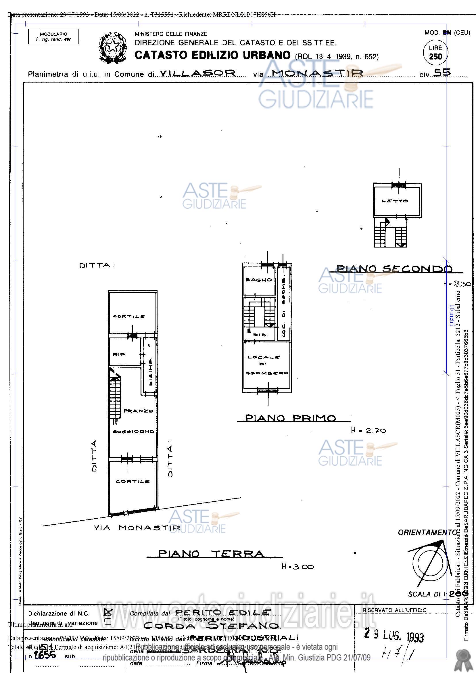 Vendita all'asta Senza incanto, con gara telematica asincrona - LOTTO UNICO: Lotto Unico: Quota pari a 1/1 del diritto di proprietà sull'immobile censito al N.C.E.U. del Comune di Villasor (CA), al Foglio n. 51, particella 5212 (ex 2655), via Monastir al n.55, piano T-1-2, cat.A/3, Classe 2, vani 4, superficie catastale totale 87 mq (escluse aree scoperte 83 mq), rendita catastale € 194,19. Prezzo base € 49.000,00 (offerta minima € 36.800,00). Data inizio operazioni di vendita: 19/02/2026 ore 10:00. Giudice Dott. Valentina Frongia. Professionista delegato alla vendita Dott. Giuseppe Marongiu - Email "studio@studiomarongiu.it"; Tel. 0704560865. Custode Giudiziario Fresi Lino Icilio Felice Ivg Cagliari - Email "ivg.visiteimmobili@tiscali.it"; Tel. 0702299036. Rif. Tribunale di Cagliari - Esecuzione immobiliare post legge 80 n. 39/2021