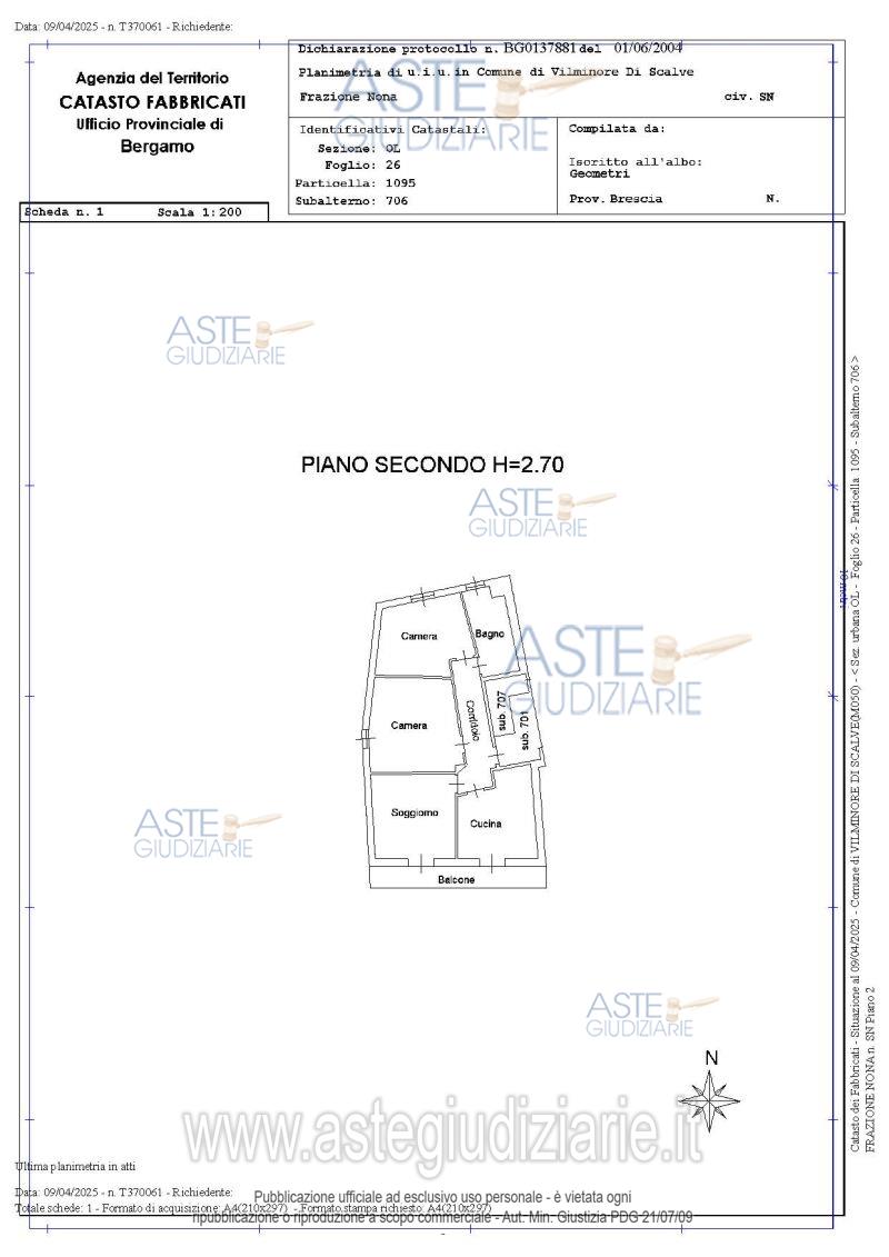 Vendita all'asta Senza incanto, con gara telematica asincrona - LOTTO 1: L’appartamento è costituito da soggiorno, cucina abitabile, con balcone, corridoio, due camere, un bagno ed un balcone, sito all'interno di un fabbricato costituito da tre piani fuori terra più un piano sottotetto, composto da n.2 appartamenti. Prezzo base € 41.500,00 (offerta minima € 31.125,00). Data inizio operazioni di vendita: 18/06/2026 ore 10:30. Professionista delegato alla vendita Avv. Samuele Cesareni - Email "info@studiolegalecesareni.it"; Tel. 0354284126. Custode Giudiziario Avv. Samuele Cesareni - Email "info@studiolegalecesareni.it"; Tel. 0354284126. Rif. Tribunale di Bergamo - Espropriazione immobiliare (cartabia) n. 8/2025