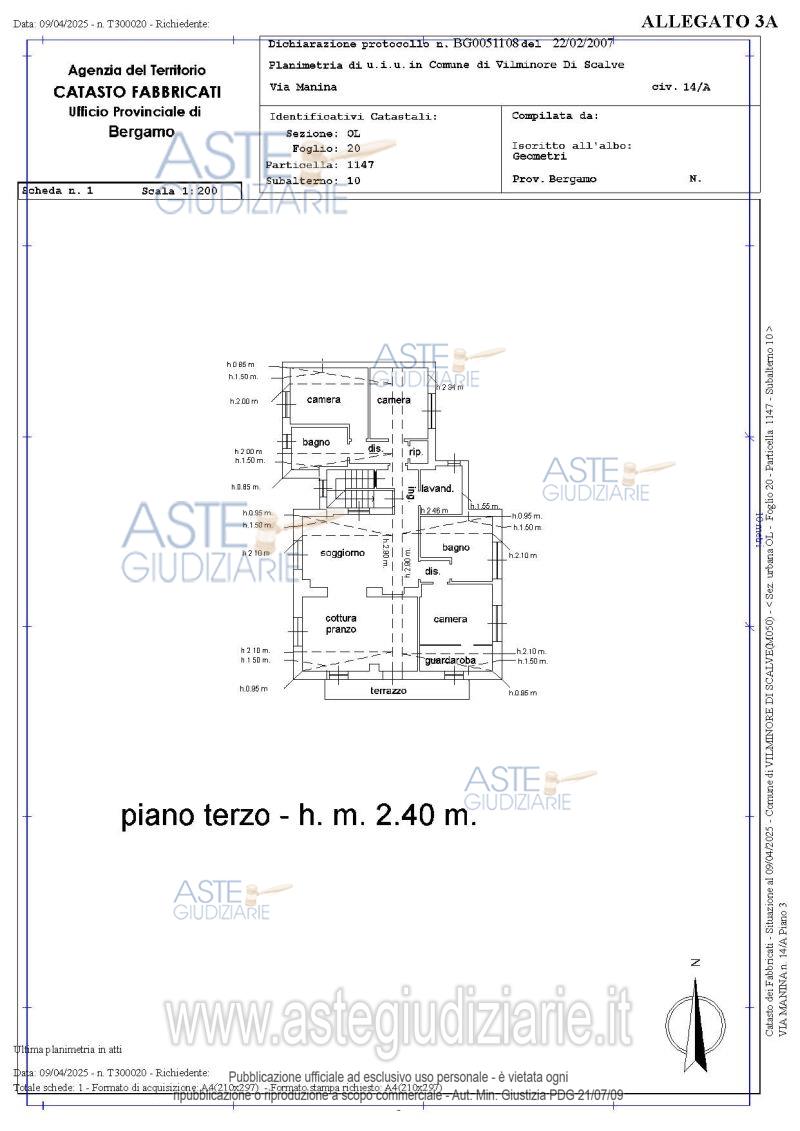Vendita all'asta Senza incanto, con gara telematica asincrona - LOTTO 3: Appartamento con quote di 1/3 di terreni e autorimesse indivise (costituenti pertinenze dell’appartamento). L’appartamento è posto al piano terzo (sottotetto) ed è costituito da ingresso, soggiorno, cucina con sala da pranzo, due disimpegni, tre camere, due bagni, una lavanderia, un ripostiglio e due balconi. Prezzo base € 130.000,00 (offerta minima € 97.500,00). Data inizio operazioni di vendita: 18/06/2026 ore 10:30. Professionista delegato alla vendita Avv. Samuele Cesareni - Email "info@studiolegalecesareni.it"; Tel. 0354284126. Custode Giudiziario Avv. Samuele Cesareni - Email "info@studiolegalecesareni.it"; Tel. 0354284126. Rif. Tribunale di Bergamo - Espropriazione immobiliare (cartabia) n. 8/2025