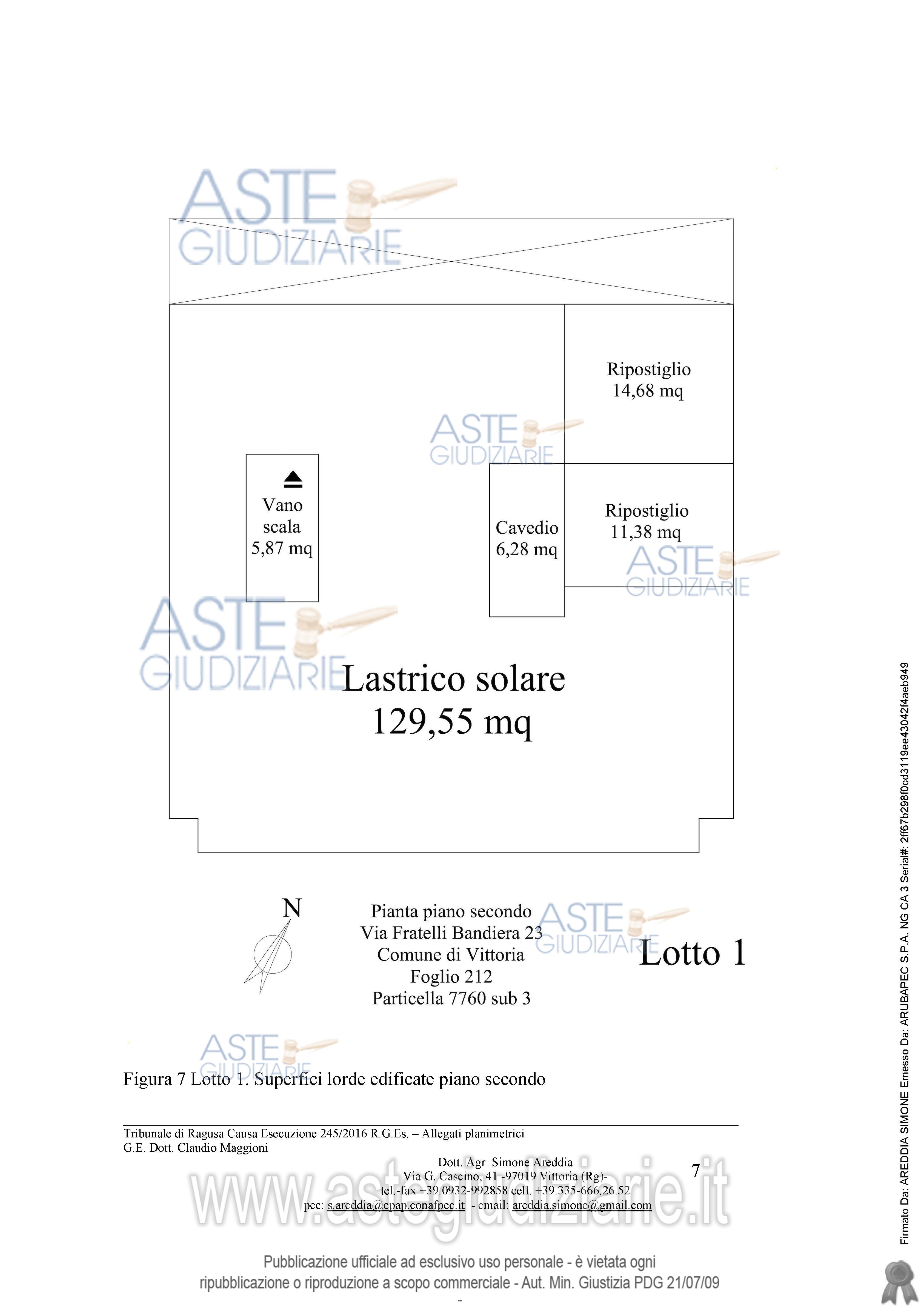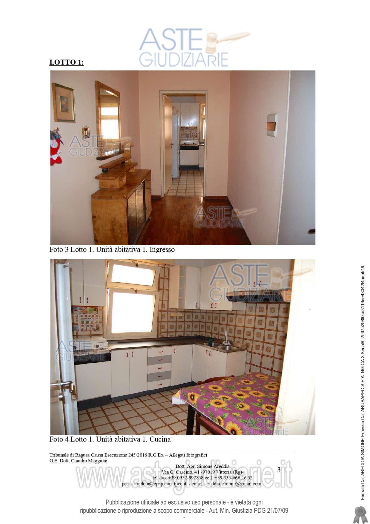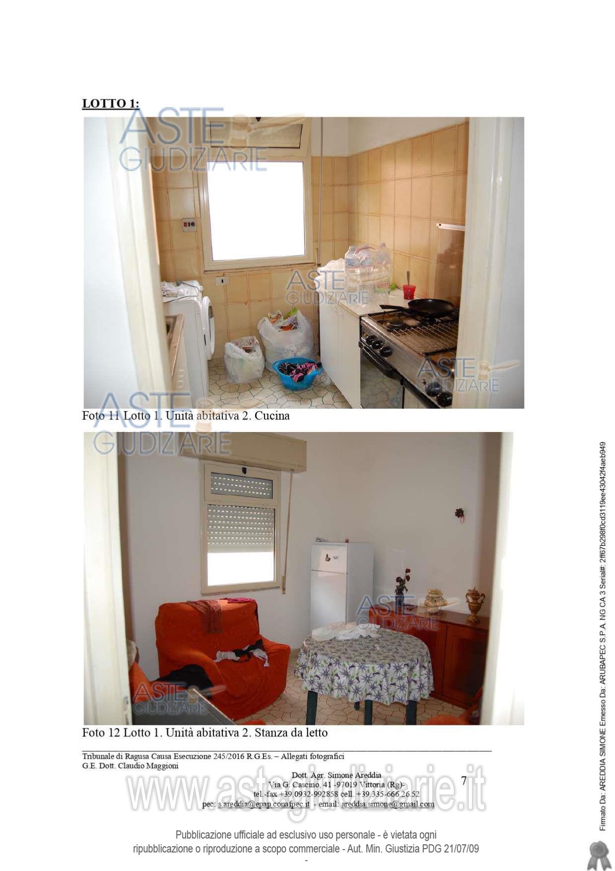 Vendita all'asta Senza incanto, con gara telematica sincrona mista - LOTTO 1: Piena proprietà di un appartamento costituito da 2 unità immobiliari al piano primo (per un totale di 9 vani) e lastrico solare al piano secondo, siti in Vittoria, Via Fratelli Bandiera 21; NCEU foglio 212, p.lle 7760 subb. 2 e 3. L’app.to è al p.1 con ingresso al piano terra (per una superficie netta abitabile di 128,29 mq); il lastrico solare (per una superficie calpestabile di 129,55 mq) con ripostigli (per una superficie lorda di 26,06 mq), è situato al piano secondo. Prezzo base € 38.981,00 (offerta minima € 29.236,00). Data vendita 07/05/2026 ore 16:00. Giudice Francesco Rio. Professionista delegato alla vendita Avv. Serafino Alfano - Email "avv.serafinoalfano@gmail.com"; Cell. 3928488519. Custode Giudiziario Serafino Alfano - Email "avv.serafinoalfano@gmail.com". Rif. Tribunale di Ragusa - Esecuzione immobiliare post legge 80 n. 245/2016
