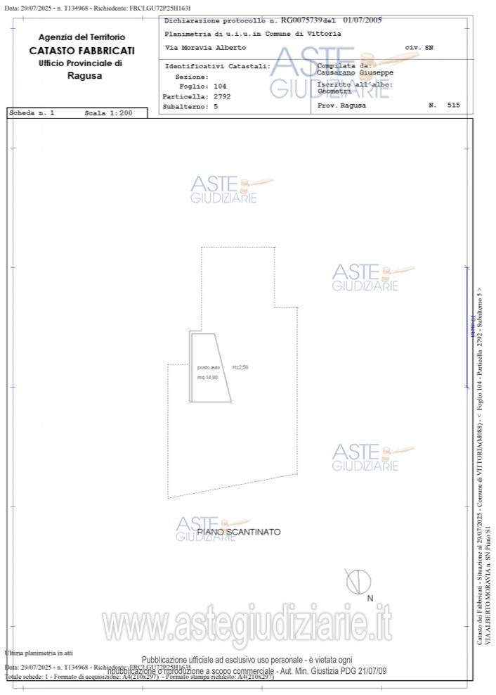 Vendita all'asta Senza incanto, con gara telematica sincrona mista - LOTTO UNICO: Appartamento per civile abitazione al piano terra rialzato con annesso posto macchina al piano seminterrato. Prezzo base € 71.850,00 (offerta minima € 53.887,50). Data vendita 27/03/2026 ore 16:00. Giudice Dott. Antonio Pianoforte. Professionista delegato alla vendita Avv. Fabrizio Di Guardo. Custode Giudiziario Avv. Fabrizio Di Guardo - Email "fdiguardo@hotmail.it". Rif. Tribunale di Ragusa - Espropriazione immobiliare (cartabia) n. 135/2025