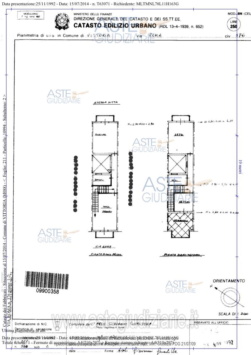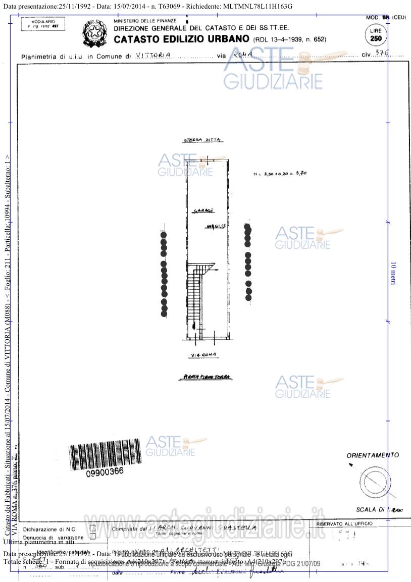 Vendita all'asta Senza incanto, con gara telematica sincrona mista - LOTTO 1: Immobile residenziale in Via Roma n. 376, Vittoria (RG) in Catasto: Foglio 211, part. 10994, sub 1, zona cens. 1, categ. C/6, classe 3, consist. 61 mq, superf. catastale totale 61 mq, Rendita Euro 160,67, Via Roma n. 376, piano T; - Unità immobiliare urbana censita nel Catasto Fabbricati del Comune di Vittoria, Foglio 211, part. 10994, sub 2, zona cens. 1, categ. A/3, classe 3, consist. 5,5 vani, superf. catastale totale 135 mq (totale escluse aree scoperte 127 mq), Rendita Euro 298,25, Via Roma n. 376, piano 1-2. Prezzo base € 98.600,00 (offerta minima € 73.950,00). Data vendita 11/06/2026 ore 09:30. Giudice Dott. Francesco Rio. Professionista delegato alla vendita Avv. Giuseppe Blundo. Custode Giudiziario Avv. Giuseppe Blundo - Email "info@studioblundo.it". Rif. Tribunale di Ragusa - Esecuzione immobiliare post legge 80 n. 492/2012