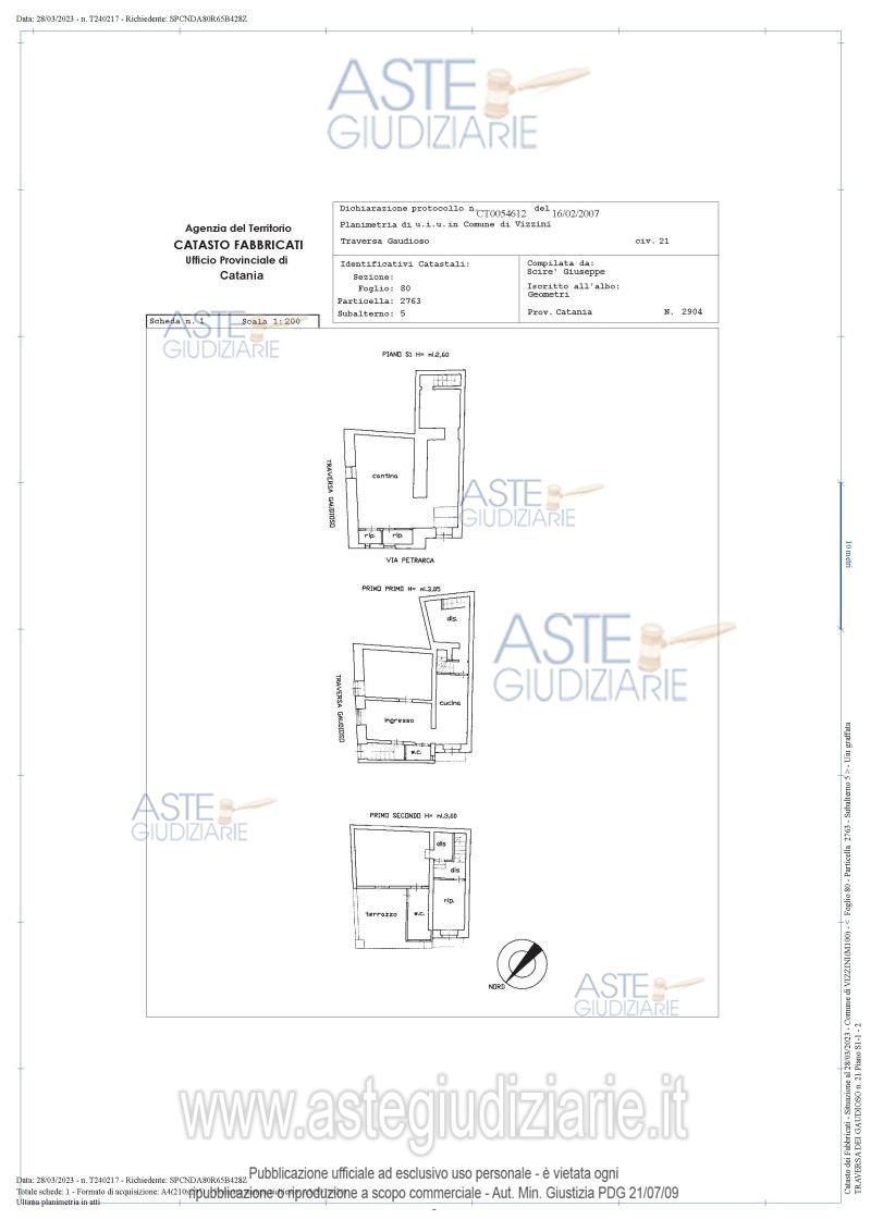 Vendita all'asta Senza incanto, con gara telematica sincrona mista - LOTTO UNICO: Appartamento unifamiliare sito nel Comune di Vizzini, individuato al NCU al foglio 80, partt. 2763 sub 5 – 2765 sub 4, via Traversa Gaudioso 21, piano S1, P1, P2, Categoria A/3, Classe 5, consistenza 6,5 vani per una superficie 166 mq, rendita € 268,56. APE: sì – CAT. G. Prezzo base € 18.112,50 (offerta minima € 13.584,00). Data vendita 15/04/2026 ore 17:30. Professionista delegato alla vendita Avv. Salvatore Mannuzza - Email "salvo.mannuzza@tiscali.it"; Cell. 3396424076. Custode Giudiziario Avv. Salvatore Mannuzza - Email "salvo.mannuzza@tiscali.it"; Cell. 3396424076. Rif. Tribunale di Caltagirone - Esecuzione immobiliare post legge 80 n. 35/2017