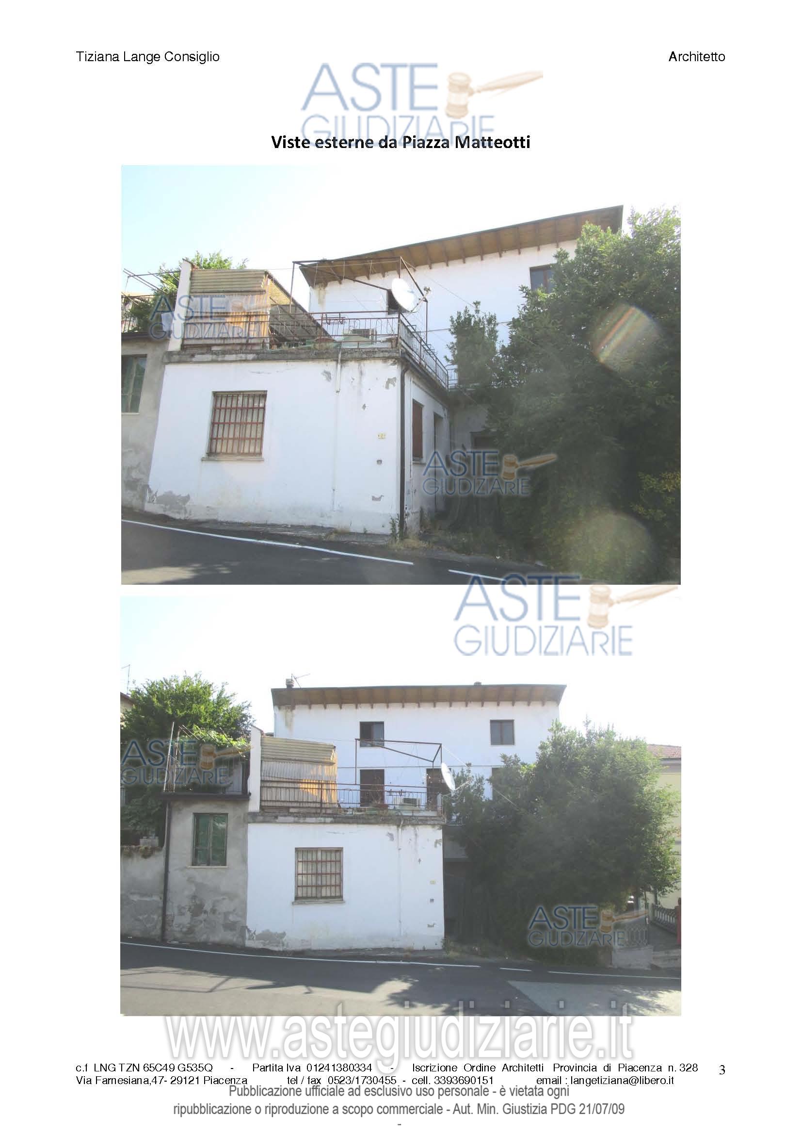 Vendita in attesa dell'emissione del nuovo bando d'asta. LOTTO 1: Piena proprietà di casa indipendente su due livelli con autorimessa posta al piano terra. Ultimo prezzo base € 28.890,00 (offerta minima € 21.667,50). Giudice Esecuzione Giudice. Professionista delegato alla vendita Not. Paola Ugolotti - Email "pugolotti@notariato.it". Custode Giudiziario Dott. Istituto Vendite Giudiziarie Di Parma E Piacenza - Email "immobiliparma@ivgparma.it"; Tel. 0521273762. Rif. Tribunale di Piacenza - Espropriazione immobiliare (cartabia) n. 24/2025