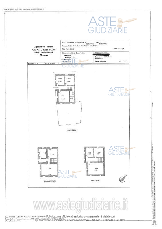 Vendita all'asta Senza incanto, con gara telematica asincrona - LOTTO UNICO: Piena proprietà abitazione indipendente su 3 piani, sono presenti 3 camere da letto e altre due stanze. Al piano terra si trovano un corridoio di ingresso, vano scala, una cucina, una cantina ed una sala. Al piano terra c'è un servizio igienico accessibile dal pianerottolo della scala. Al piano superiore vi è un sottotetto non abitabile. E' presente un impianto di riscaldamento autonomo distribuito con caldaia posta nel locale cantina ed è presente una stufa al piano terra . Prezzo base € 30.796,87 (offerta minima € 23.097,65). Data inizio operazioni di vendita: 05/03/2026 ore 12:00. Giudice Giulia Lucchi. Professionista delegato alla vendita Avv. Elisa Tavani - Email "tavanielisa@gmail.com"; Tel. 0598396448. Custode Giudiziario Alex Manelli - Email "visiteimmobili@ivgmodena.it"; Tel. 059847301. Rif. Tribunale di Modena - Esecuzione immobiliare post legge 80 n. 216/2022