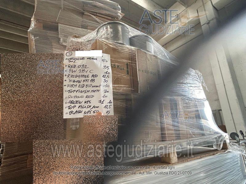 Vendita all'asta Senza incanto, con gara telematica asincrona - LOTTO 14: (bene indicato nell’inventario con il n. 68) n 50 VERNICE OPACA 341, (bene indicato nell’inventario con il n. 69) n.35 RED 032, (bene indicato nell’inventario con il n. 70) n.10 BLU 281 C, (bene indicato nell’inventario con il n. 71) n.12,50 RHODAMINE RED, (bene indicato nell’inventario con il n. 72) n. 30 YELLOW NPS 18, (bene indicato nell’inventario con il n. 73) n. 10 WARM RED BIO NOVANIT, (bene indicato nell’inventario con il n. 74) n.20 TOP FINISH MAK, (bene indicato nell’inventario con il n. 75) n. 10 RUBINE RED, (bene indicato nell’inventario con il n. 76) n. 12,50 TOP FINISH 100, (bene indicato nell’inventario con il n. 77) n. 5 BLACK NPS 50, (bene indicato nell’inventario con il n. 78) n. 15 PROCESS BLU, (bene indicato nell’inventario con il n. 79) n. 5 BLU P 285, (bene indicato nell’inventario con il n. 80) n.2,5 DARK BLU, (bene indicato nell’inventario con il n. 81) n. 7 PINK, (bene indicato nell’inventario con il n. 82) N. 871 ARGENTO, (bene indicato nell’inventario con il n. 83) N.77,50 EXP 27 MAGENTA, (bene indicato nell’inventario con il n. 84) N.20 EXP24 BLACK, (bene indicato nell’inventario con il n. 85) N. 60 EXP 25 CIANO, (bene indicato nell’inventario con il n. 86) N.30 EXP 26 YELLOW, (bene indicato nell’inventario con il n. 87) N.25 WR1 GREY, (bene indicato nell’inventario con il n. 88) N.5 TPF 400 GLOGG, (bene indicato nell’inventario con il n. 89) N.10 FGP 27 SUNPAK MAGENTA, (bene indicato nell’inventario con il n. 90) N.24 TRASPARENT WHITE, (bene indicato nell’inventario con il n. 91) N.5 VILLA PRINT 92, (bene indicato nell’inventario con il n. 92) N.35 BLU 2718 C, (bene indicato nell’inventario con il n. 93) N.10 FSP 26 YELLOW, (bene indicato nell’inventario con il n. 94) N.10 FSP 25 YELLOW, (bene indicato nell’inventario con il n. 95) N.10 FSP 46 BLACK. Prezzo base € 256,00 (offerta minima € 192,00). Data inizio operazioni di vendita: 11/11/2025 ore 11:00. In caso di più offerte valide si procederà a gara che terminerà il 18/11/2025 ore 11:00. Giudice Dott. Michele De Palma. Curatore Avv. Pierfrancesco Marasciulo - Email "marasciulo.pierfrancesco@gmail.com". Rif. Tribunale di Bari - Liquidazione giudiziale(cci) n. 115/2023