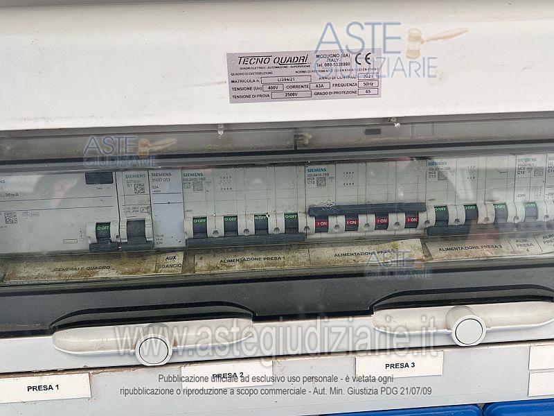 Vendita all'asta Senza incanto, con gara telematica asincrona - LOTTO 13: Quadri elettrici da cantiere. Prezzo base € 350,00 (offerta minima € 262,50). Data inizio operazioni di vendita: 13/04/2026 ore 11:00. In caso di più offerte valide si procederà a gara che terminerà il 20/04/2026 ore 11:00. Giudice Angelo Farina. Curatore Dott. Lorenzo Salamina - Email "salaminalorenzo@gmail.com". Rif. Tribunale di Bari - Liquidazione giudiziale(cci) n. 90/2024