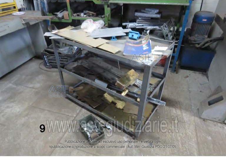 Vendita all'asta Con incanto, con gara telematica asincrona - LOTTO 9: N. 1 COMPRESSORE CARRELLATO 11 BAR ANNO 1999; MARCA FINI;N. 1 VASCA PER RAFFREDDAMENTO IN FERRO mt.1,5x1,5;N. 1 BANCHETTO DA LAVORO IN FERRO CON MORSE LATERALI;N. 1 TRONCATRICE PER FERRO DISMESSA;N. 1 PRESSA ECCENTRICA; MARCA CURLI; MODELLO 10 80;N. 1 RASTRELLIERA PORTA LAMIERE IN FERRO;N. 4 BANCHI DA LAVORO IN FERRO CON UTENSILI ED ATTREZZI;N. 2 CARRELLI PORTA ATTREZZI IN FERRO;N. 1 TRAPANO A COLONNA; MARCA SUPER CONDOR; MODELLO 18;N. 1 CARRELLO ELEVATORE ELETTRICO OBSOLETO E NON FUNZIONANTE;. Prezzo base € 1.125,00 (offerta minima € 1.125,00). Data vendita: dal 27/05/2026 ore 11:00 al 03/06/2026 ore 11:00. Giudice Dott. Fabio Letterio Ciraolo. Curatore Avv. Enrico Marino. Rif. Tribunale di Catania - Fallimentare (nuovo rito) n. 16/2022