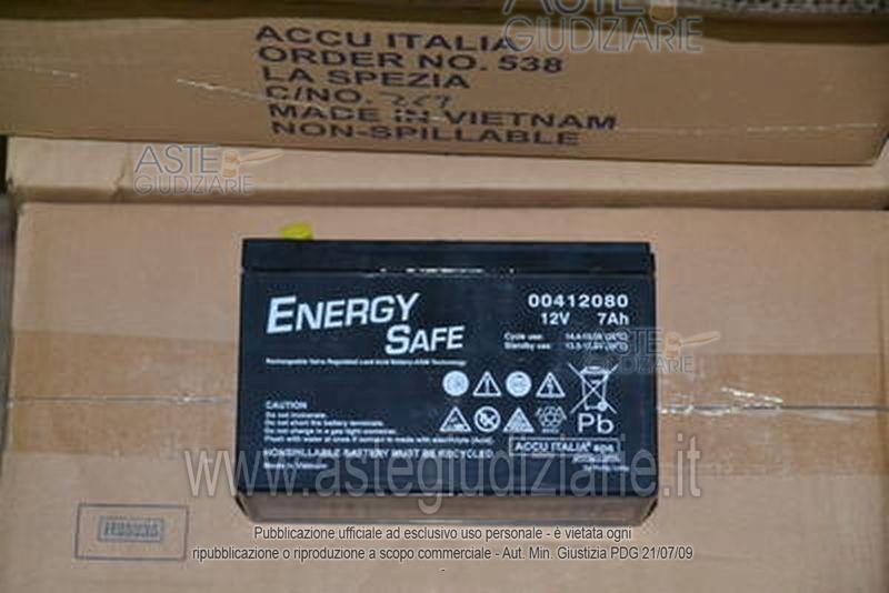 Vendita all'asta Senza incanto, con gara telematica asincrona - LOTTO 3: N. 37 BATTERIE 12W DA 7 AMPERE N. 43 BATTERIE 12W DA 2,3 AMPERE . Prezzo base € 159,24 (offerta minima € 159,24). Data inizio operazioni di vendita: 21/04/2026 ore 11:00. In caso di più offerte valide si procederà a gara che inizierà il 21/04/2026 ore 11:00 e terminerà il 28/04/2026 ore 11:00. Giudice Dott. Alessandra Bellia. Curatore Avv. Marco Scala - Email "m.scala@studiolegalescala.com". Rif. Tribunale di Catania - Liquidazione giudiziale(cci) n. 196/2024