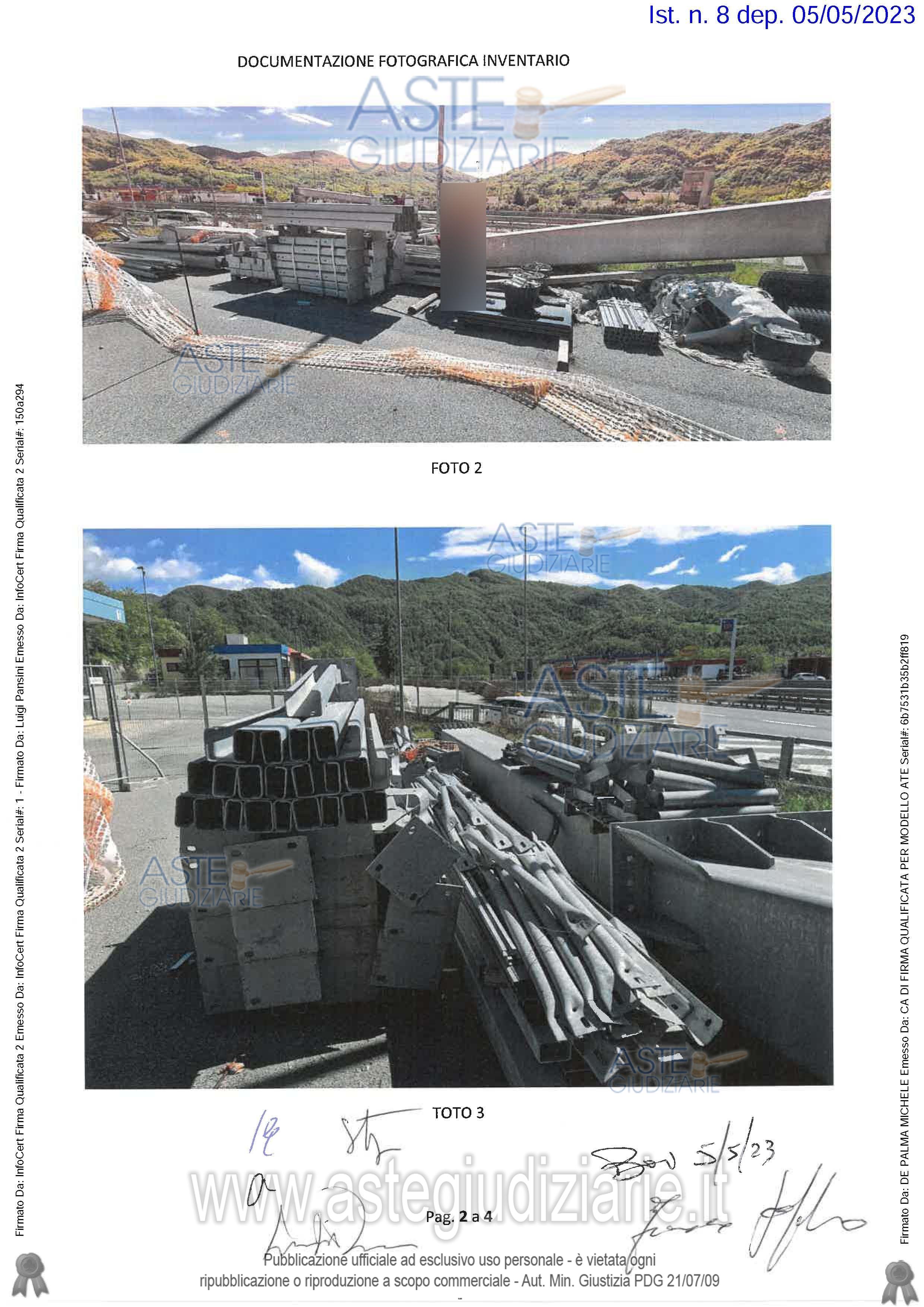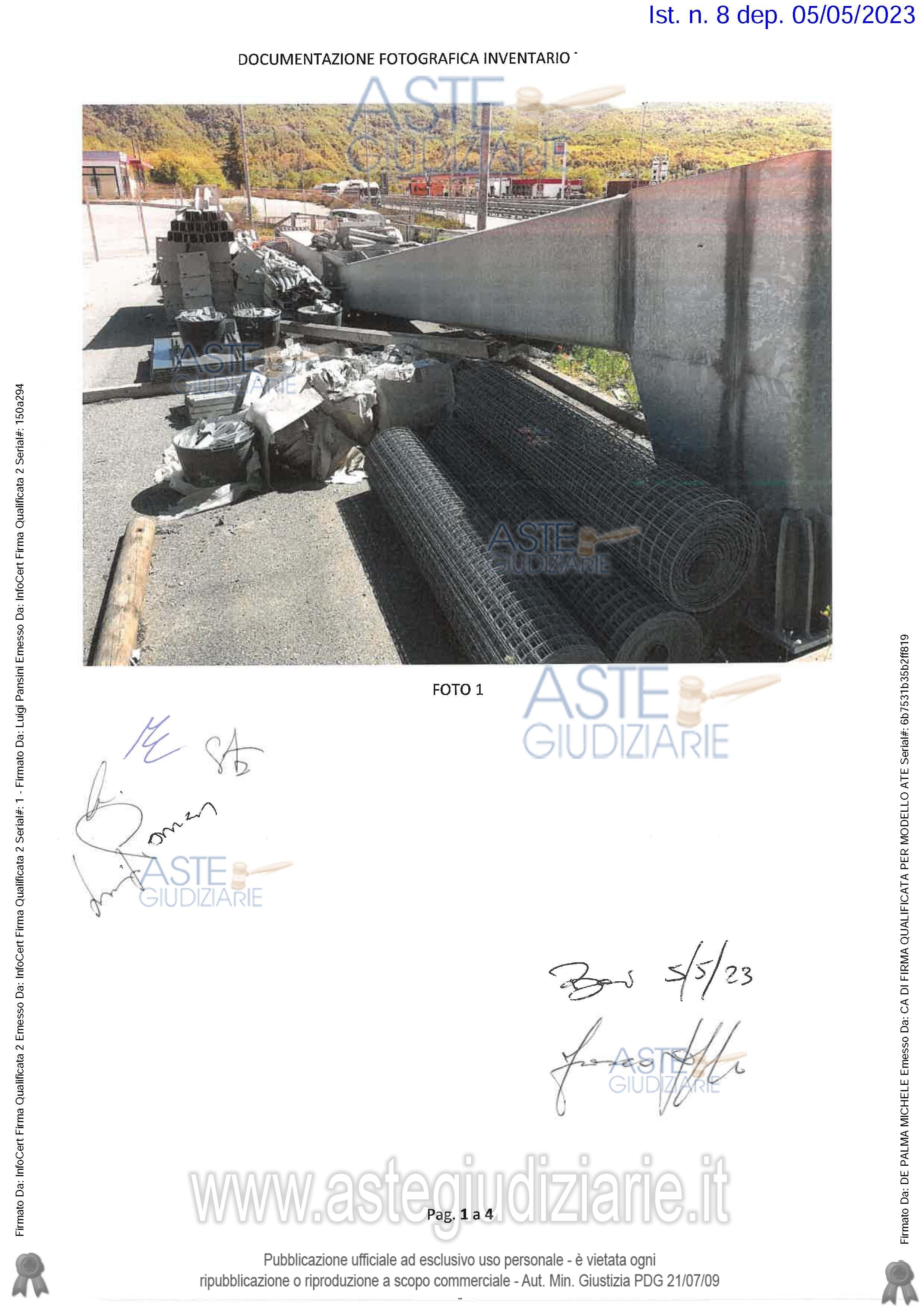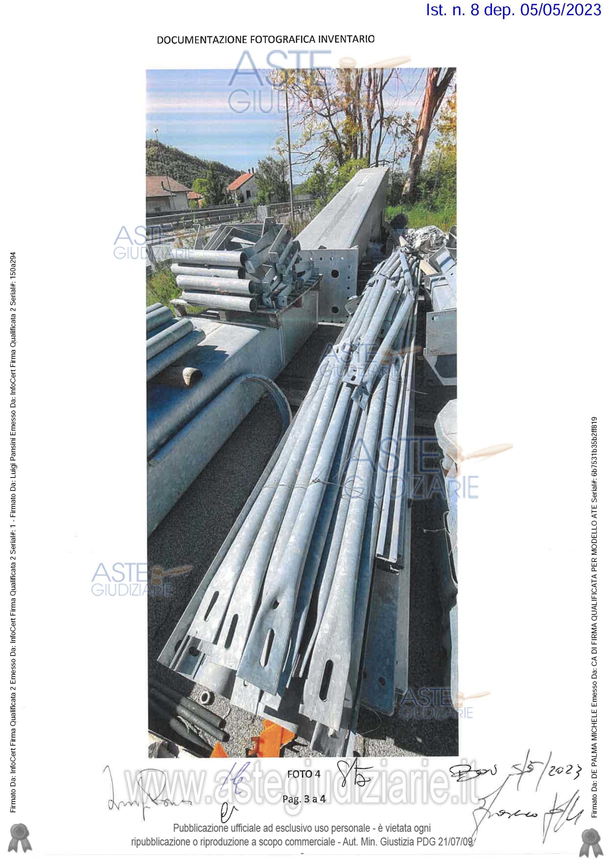 della lunghezza di circa mt. 5 (mt. 4,60 considerata la sovrapposizione); n. 7 terminali, n. 40 paletti, n. 28 paletti da terreno, n. 3 rotoli e mezzo di rete di protezione, un numero imprecisato di bulloni, accessori in ferro e catadiottri; correnti anteriori e posteriori per le barriere. Come da inventario regolarmente depositato. Curatore Avv. Luigi Pansini - Tel. 080 5214340. Rif. Tribunale di Bari - Liquidazione giudiziale n. 12/2023