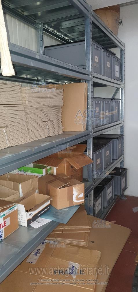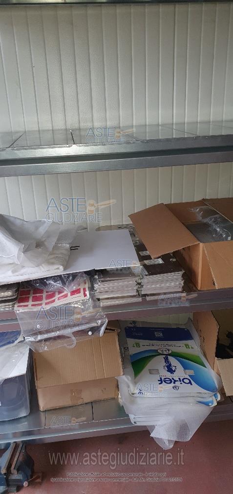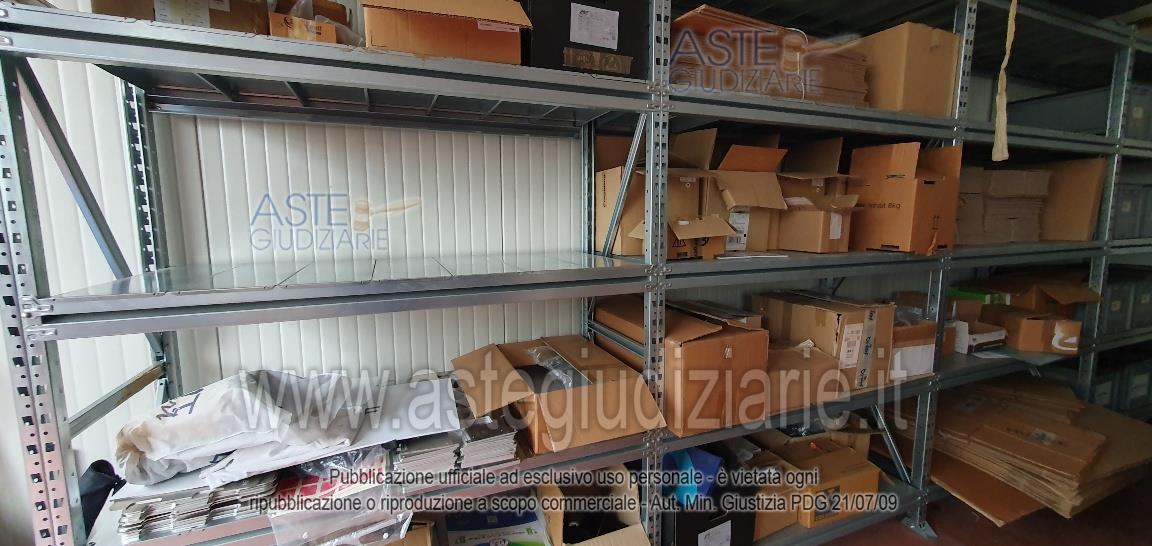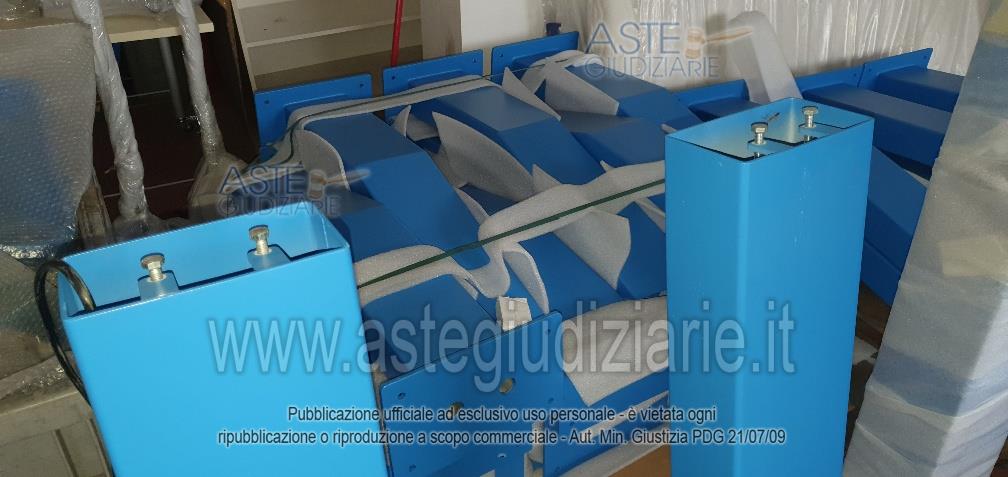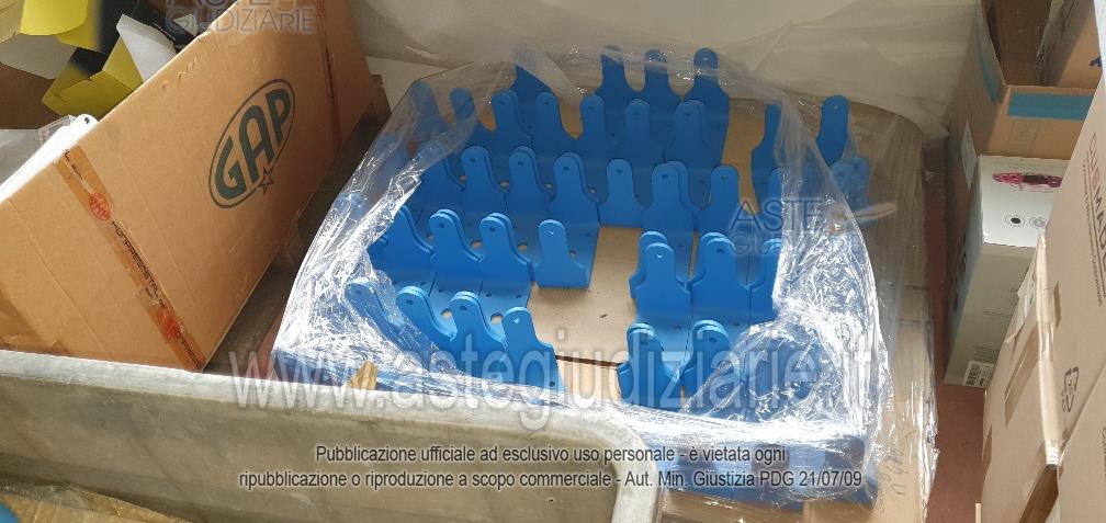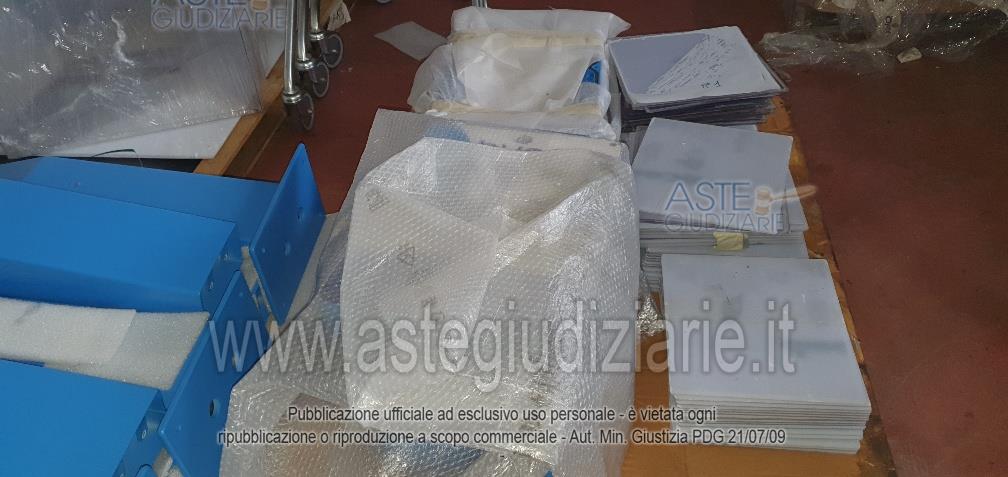 - 16 bancali di materiale vario: scatole gusci, basamenti, cavi vari, stoffe, componenti delle colonnine di ricarica